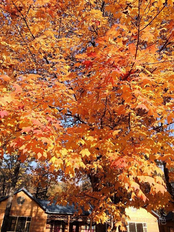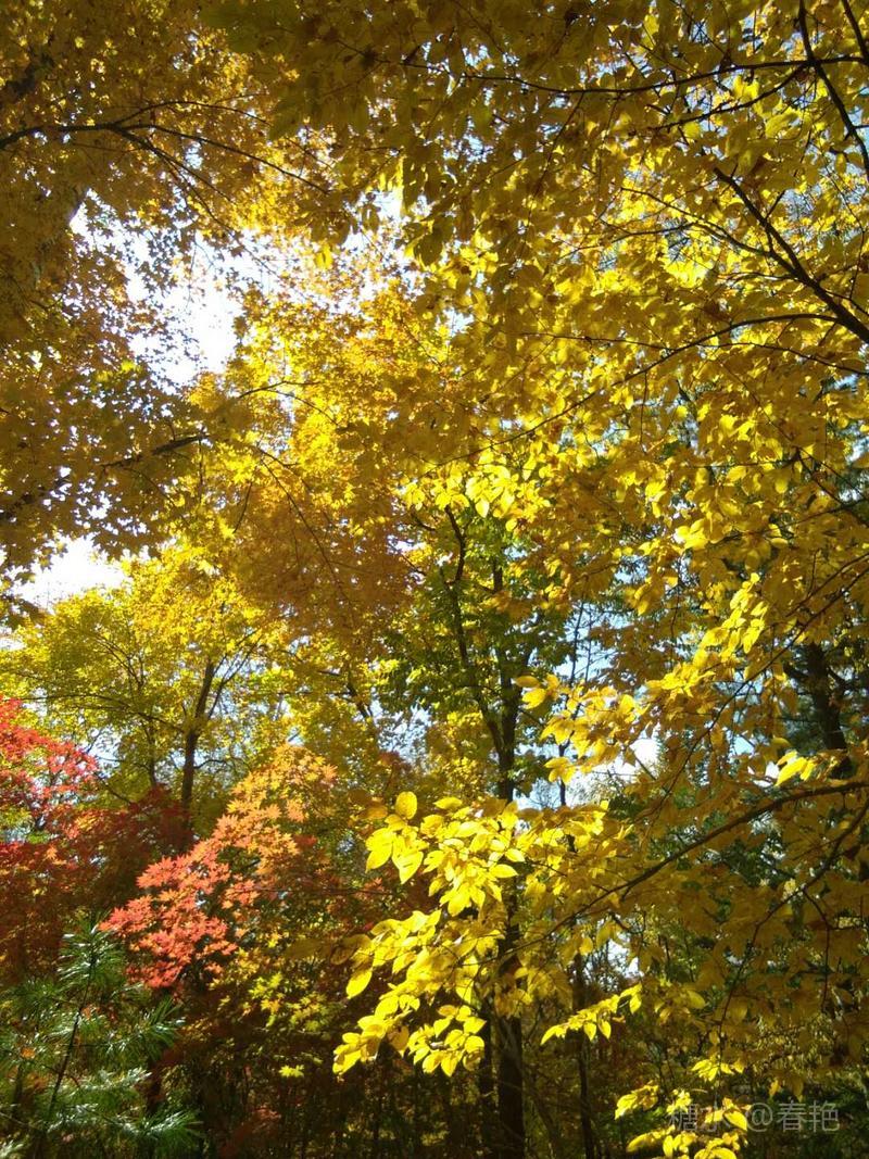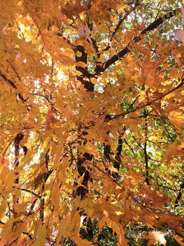 走进深林里,就像置身于金色的海洋。在阳光的照耀下,闪闪发光,天与地也融为 一体,到处都是金黄一色。