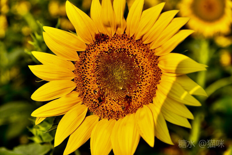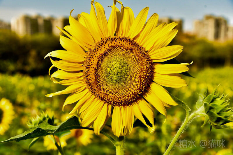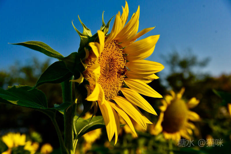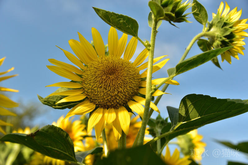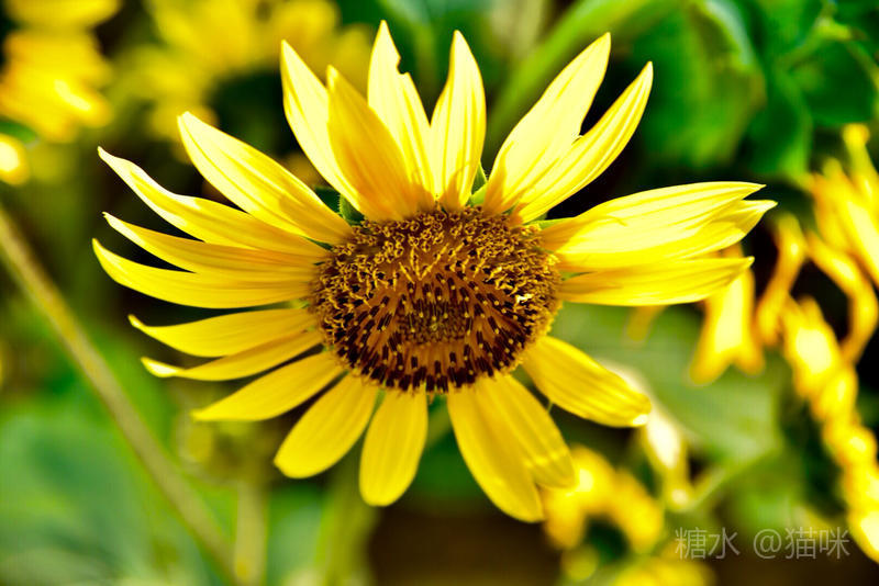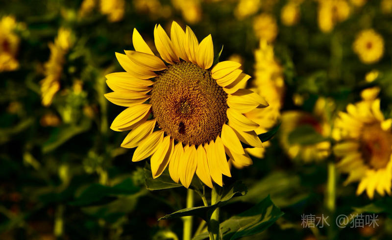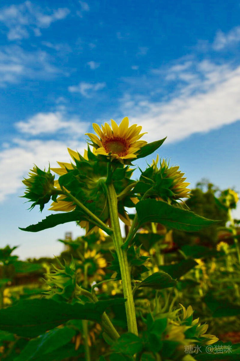 向日葵告诉我只要面对着阳光努力向上,日子就会变得单纯而美好,一阵狂风,一场暴雨向日葵在风雨中摇摆,而它的头却时时刻刻朝着太阳。向日葵之所以幸福是因为时刻都微笑着面对阳光,用心的收集阳光,抛去一切杂念,不计较,不比较,努力生长,活得单纯而美好。