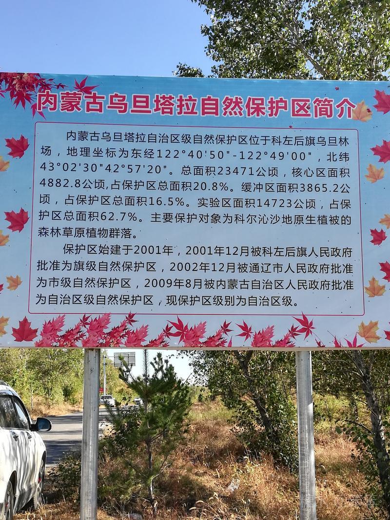 乌旦塔拉五角枫森林公园 乌旦塔拉五角枫公园位于科左后旗政府所在地甘旗卡镇以东南55公里处,甘金北线以南11公里的科尔沁沙漠腹北,总面积35万亩,其中有林面积93000亩,占保护区总面积的80%,是自治区级自然保护区。 乌旦塔拉五角枫公园位于内蒙古科左后旗政府所在地甘旗卡镇以东55公里处,甘金北线省道305线以南11公里处科尔沁沙漠腹地,甘旗卡、吉尔嘎朗和常胜三镇的交界地带,总面积35万亩,其中核心区105300亩。有林面积93000亩,占保护区总面积的88%。在林地面积中国家重点公益林有83921亩,其中天然林有53000亩,保护区内植物有56科191属333种,主要以五角枫为主,生长年限在50-500年,部分树龄在500年以上,胸径达80-100厘米。其它树种有蒙古栎、山里红、大果榆等树种。有世界级保护动物2种,分别为大鸨和金雕,国家级保护动物28种,是该旗有林面积较大、自然生态保存较好、林木品种较多的一处自然保护区。 乌丹塔拉五角枫森林公园夕阳美景 五角枫是一种名贵树种,因其枫叶独有五裂而得名。它不仅极具观赏性,而且具有十分重要的生态作用,是东方白鹳、金雕等珍禽栖息繁殖场所。秋霜过后,树叶的颜色各异,蔚为壮观。 乌旦塔拉五角枫公园现已被通辽市列为“通辽市十大郊野公园”之一。 中文名称 乌旦塔拉五角枫公园 地理位置 内蒙古通辽市科左后旗境内 气候类型 大陆性季风气候 占地面积 35万亩 著名景点 瞭望台 格图制作 笨笨 图片来源 手机拍摄 格图音乐 网络下载 格图文字 网络下载 制作时间 2018年10月03日