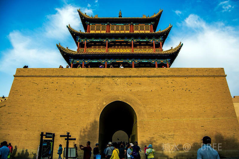 嘉峪关 号称“天下第一雄关”,位于甘肃省嘉峪关市西5千米处最狭窄的山谷中部,城关两侧的城墙横穿沙漠戈壁,北连黑山悬壁长城,南接天下第一墩,是明长城最西端的关口,历史上曾被称为河西咽喉,因地势险要,建筑雄伟,有连陲锁钥之称。 嘉峪关是古代“丝绸之路”的交通要塞,中国长城三大奇观之一(东有山海关、中有镇北台、西有嘉峪关)。