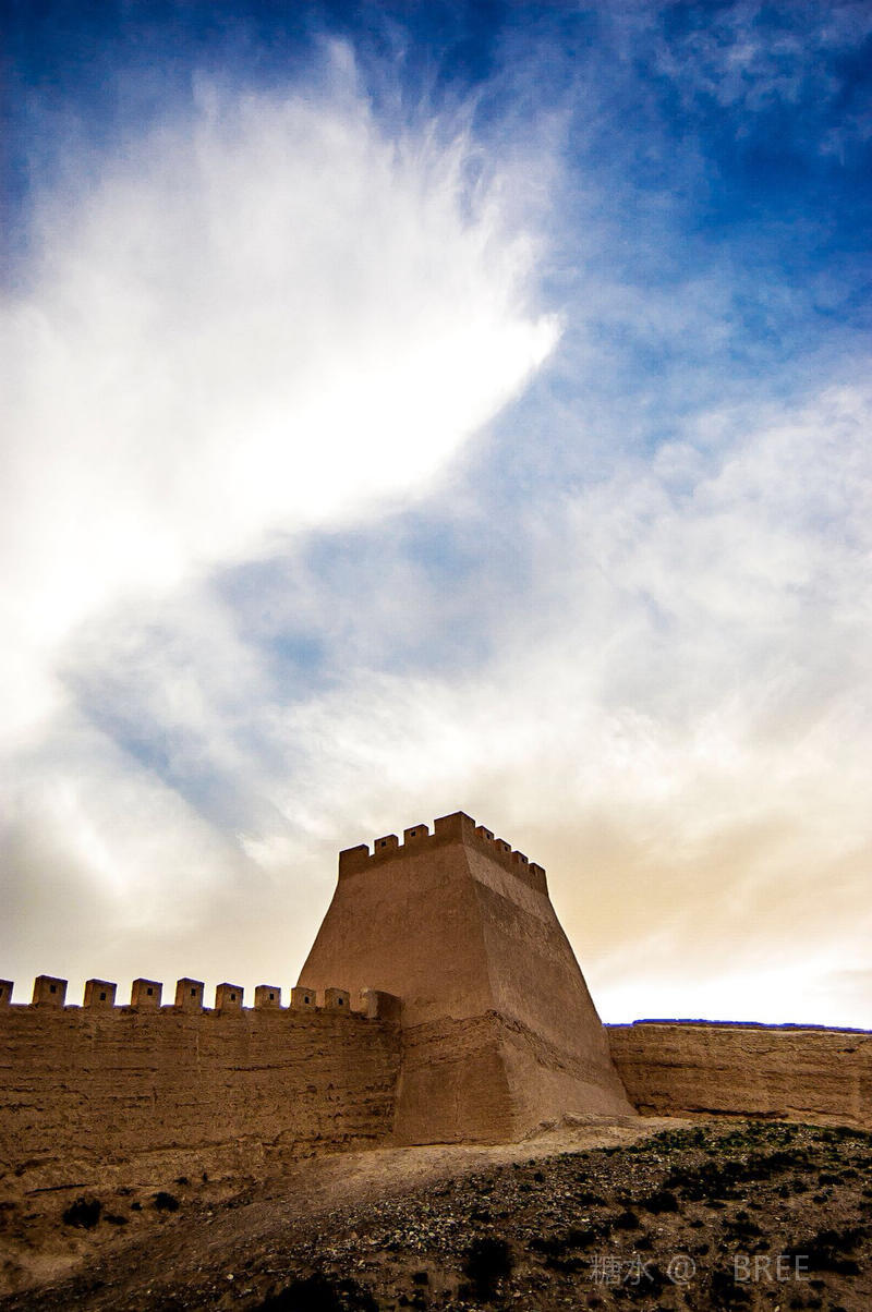 汉长城 长城,是古代中国为抵御不同时期塞北游牧部落联盟的侵袭而被迫修筑的、规模浩大的军事工程。这个防御体系在当时被称为河西汉塞,它由烽燧、城障、坞院、出入境关卡等组成。 它们不仅构成了一条军事防御线,而且还是交通线和供给线。汉帝国中央政府的邮驿系统也随之延伸至酒泉、鄯善、楼兰境内。 河西汉塞因此成为中国最有特色的边塞建筑。 河西走廊也是今天汉长城分布最集中、保持最好的地区。 这些长城烽燧在河西大地上纵横伸展,两千年来始终屹立在戈壁风沙的苍茫岁月之中,见证着汉帝国对这条战略通道的宏大经略。