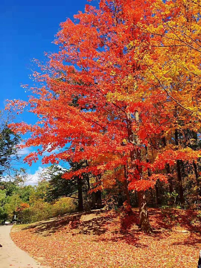 《秋枫》 枫林胜火欲焚天, 朱山绛岸赤湖湾; 古今多少风流客, 画意诗情萦叶间? 2018/10/14