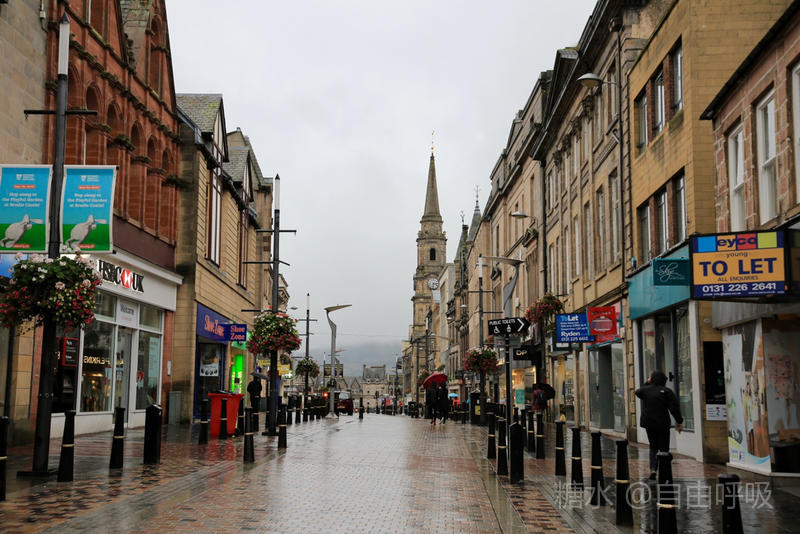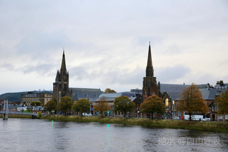 因佛内斯是苏格兰北部城市,是苏格兰高地境内唯一一个具有城市地位的地区,是苏格兰高地地区的首府,因此号称“英国最北的城市”。因佛内斯位于尼斯河注入北海所形成的海口——默里湾旁,尼斯河从因弗内斯穿城而过流入尼斯湖。 傍晚入住市区酒店,Check in后即冒雨上街游览。