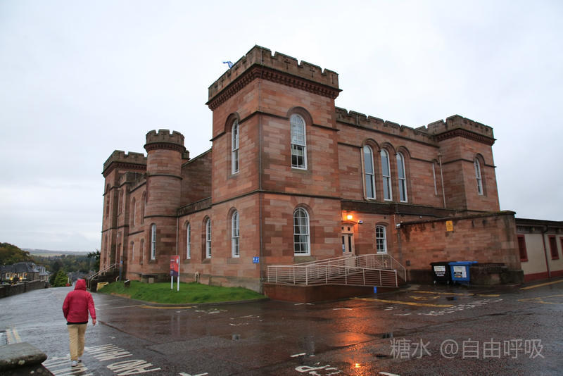 我们冒雨沿着上坡路走到在一个小高地上的因弗内斯城堡。因弗内斯城堡坐落在悬崖上,自1057年起就有城堡的记录了,后他被夷为平地,11世纪在原基础上又重新建立了一个防御结构的地面城堡,在莎士比亚的戏剧“麦克白”中也有提到早期的城堡,1429年,唐纳德家族在因弗内斯的城堡部分被苏格兰国王罗伯特一世摧毁,罗斯于1491年占领城堡。 1548年,乔治•戈登•亨特利伯爵恢复了城堡。1649年和1650年的内战,城堡被围困,在1715和1746詹姆斯党起义围困了城堡,受到了很大的破坏。 1836年,在原来的基础上重建,也就是今天我们看到的模样,用红沙石料构建,由建筑师威廉伯恩设计修建。今天,城堡属于因弗内斯警长法院,城堡本身是不向公众开放,但可以在城堡的大院里参观,还可以俯瞰整个城市。