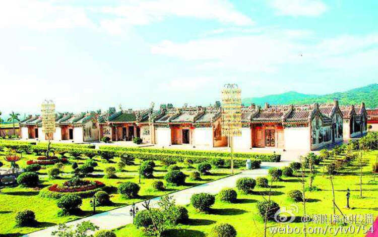主体建筑“九龙吐珠”以“玉声家祠”及其后库为轴线贯穿上下,共有八座“四点金”分左右两边,迎合潮汕宅居尚“中”的理念,是儒家正统的观念在中国传统建筑文化上的体现。
