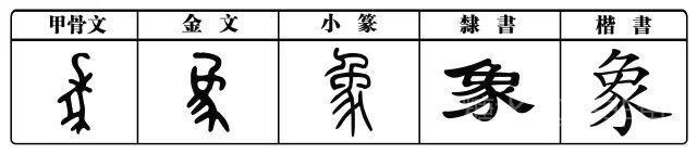 象[xiàng]:上面的一撇和一折表示大象的鼻子,这个扁方块表示头和两只耳朵,它的下身与猪相似,所以就用豕来表示。