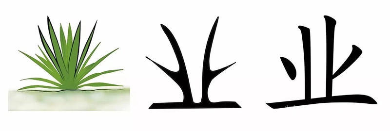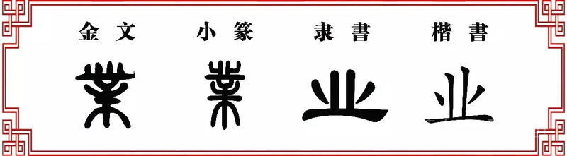 业:这个字是灌木丛的形象,上面两竖两点,表示灌木和枝叶,下面一横表示地平线,因为枝叶繁多,所以它的读音与枝叶的叶相同。现在社会上有各种各样的行业,事业都用这个业字来表示。