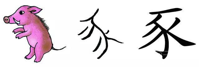 豕[shǐ]:这是一头猪的形象,上面的一横是头,左边是四条腿,中间是猪身子,右上一撇是猪鬃,下面一捺是尾巴,这种动物很脏,常与污泥和粪便滚在一起,所以就把这个字读shǐ。