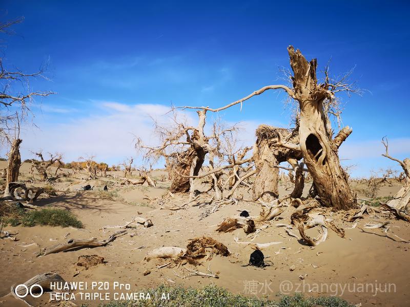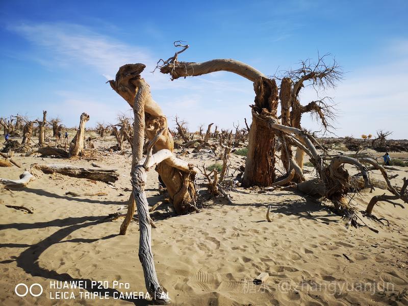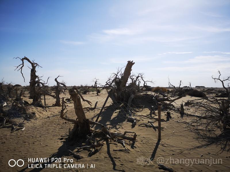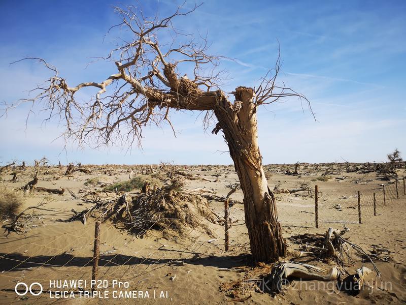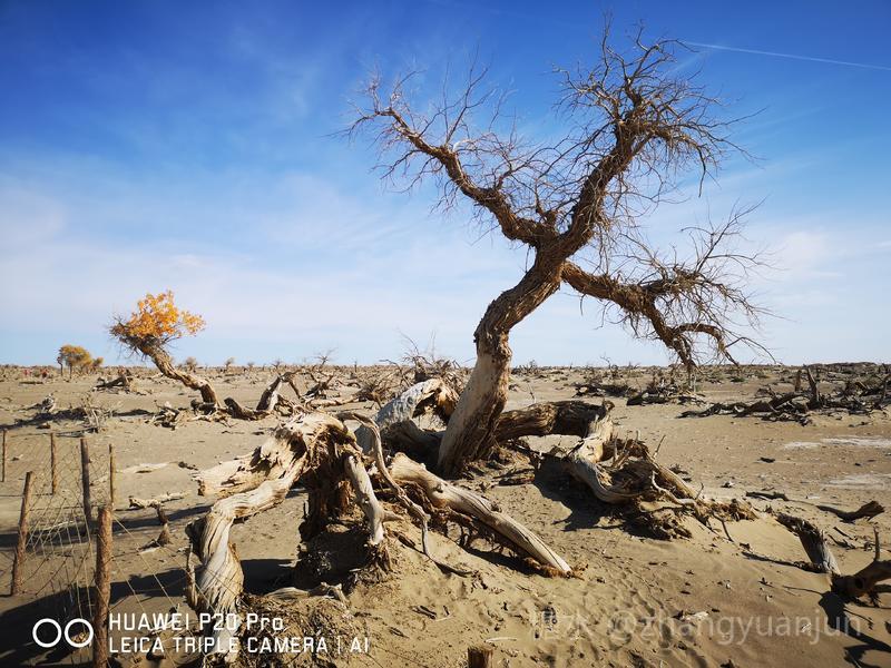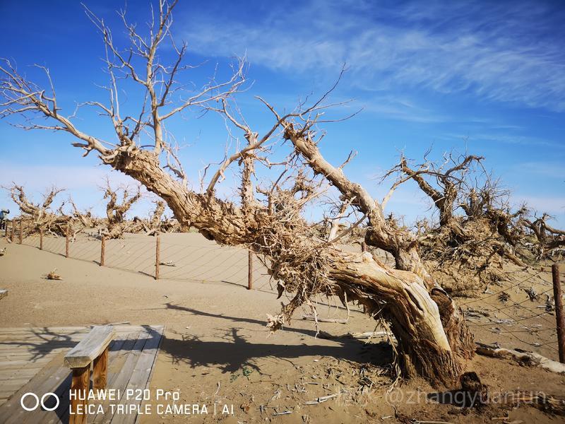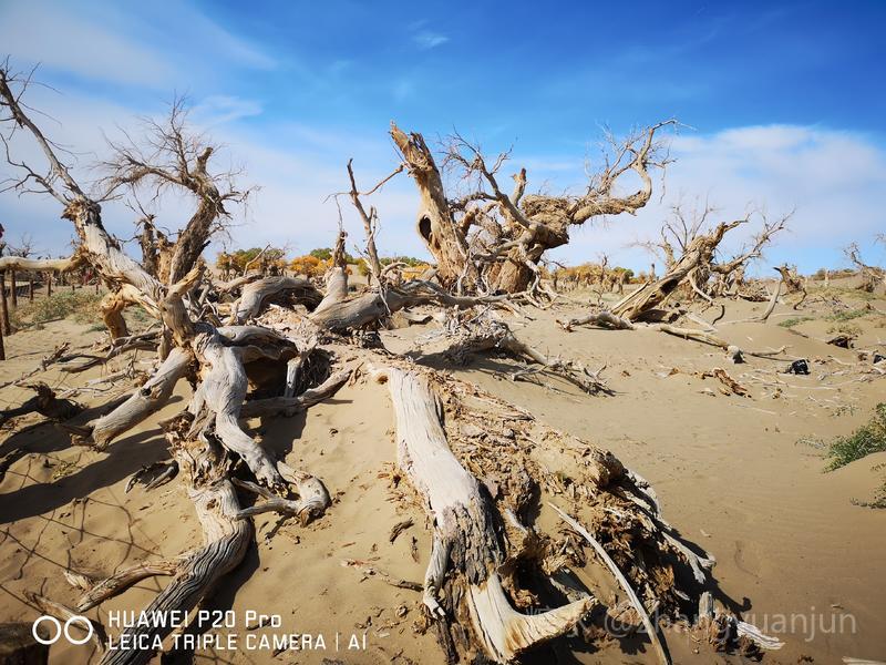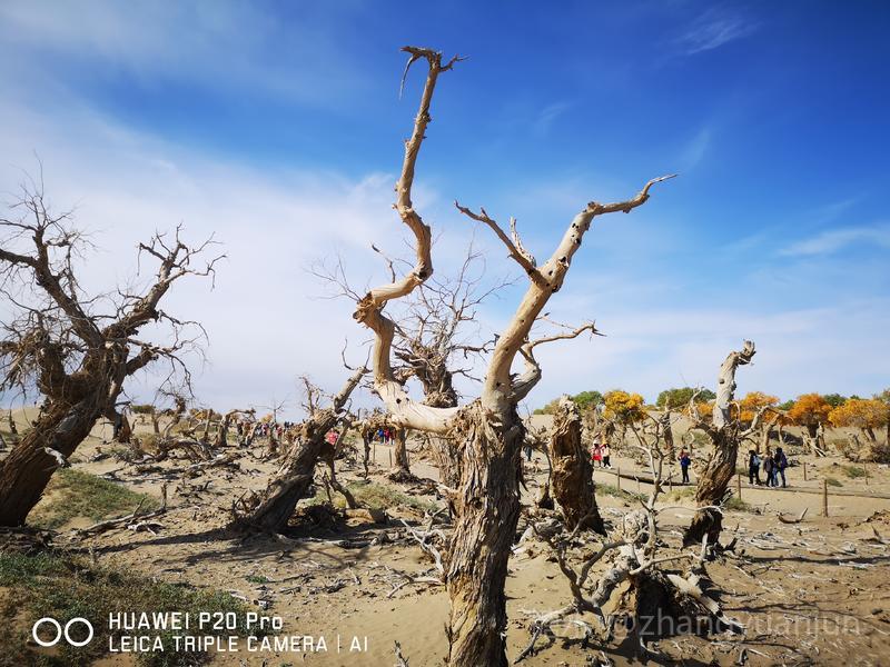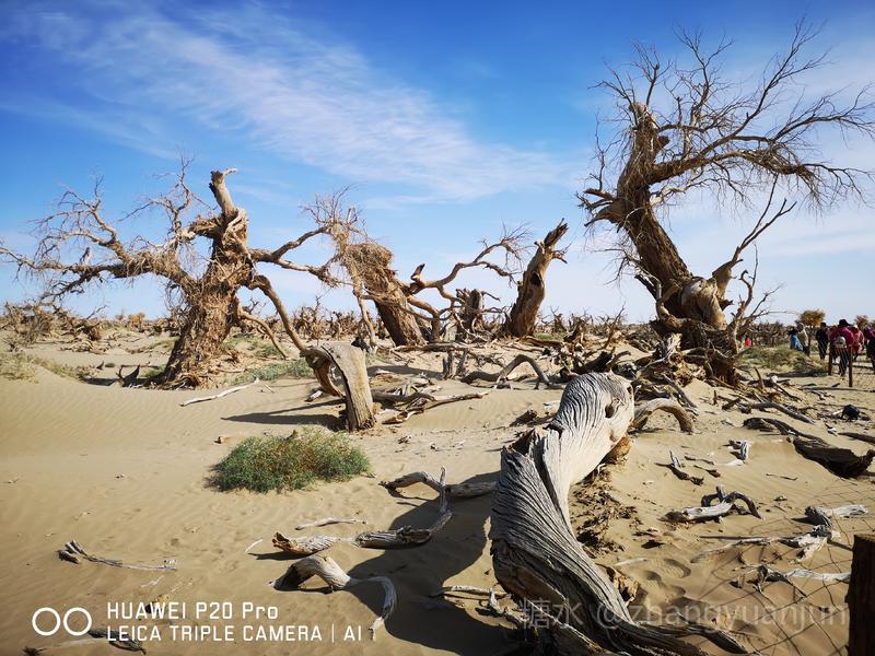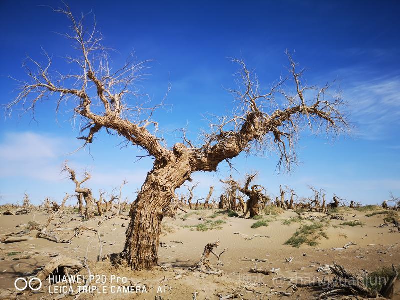 额济纳旗的怪树林,位于额济纳旗政府所在地——达来呼布镇西南约26公里的一片戈壁上,与有两千年历史的红城遗址、集隋唐两朝历史为一体的大同城遗址以及“丝绸之路”上现存最完整、规模最宏大的古城遗址——西夏黑城(黑水城),同在一个景区。怪树林位于景区大门处,是一片东西宽、南北长的原始胡杨林。由于水源不足,大面积的胡杨树木枯死,枯木的每一个枝干都有着难以名状的奇怪形状。