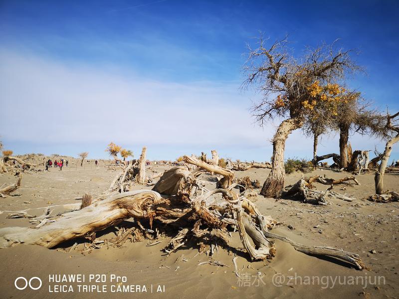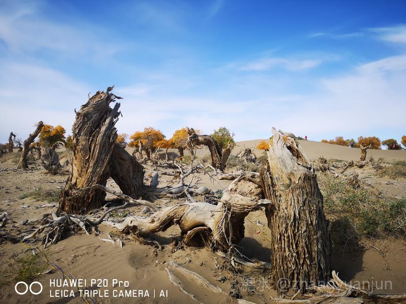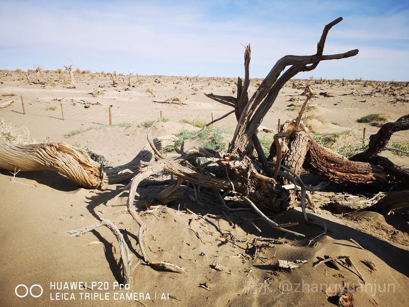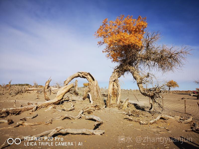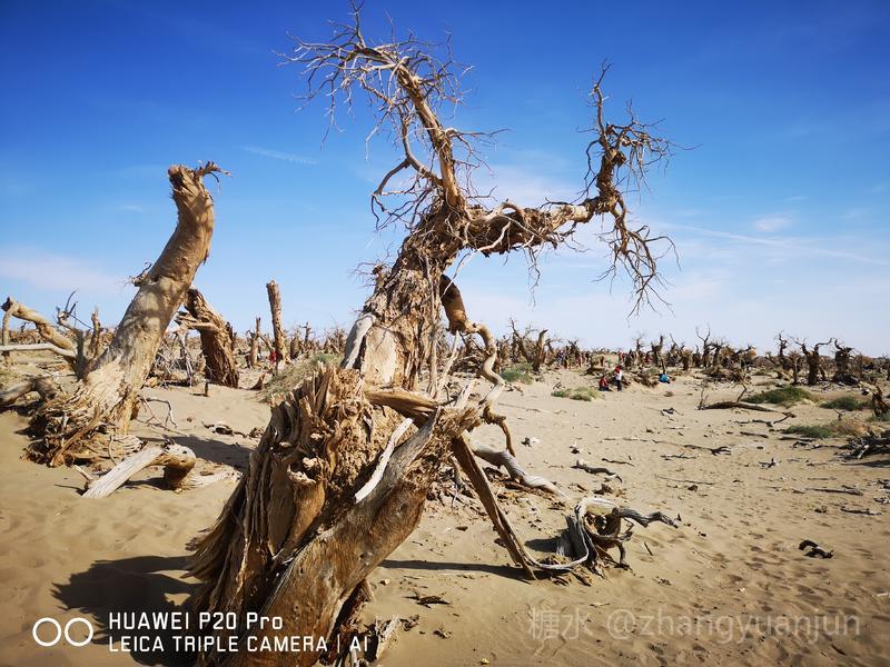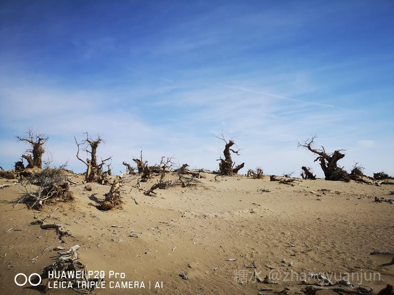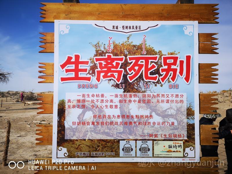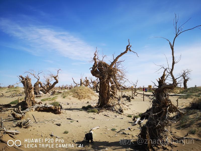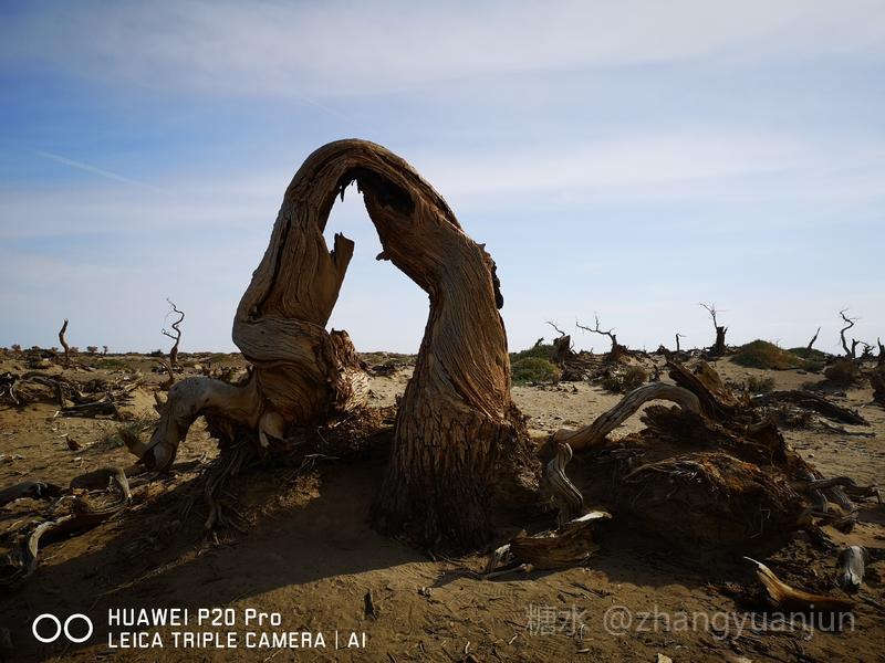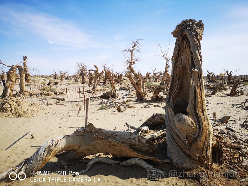 额济纳旗的怪树林,位于额济纳旗政府所在地——达来呼布镇西南约26公里的一片戈壁上,与有两千年历史的红城遗址、集隋唐两朝历史为一体的大同城遗址以及“丝绸之路”上现存最完整、规模最宏大的古城遗址——西夏黑城(黑水城),同在一个景区。怪树林位于景区大门处,是一片东西宽、南北长的原始胡杨林。由于水源不足,大面积的胡杨树木枯死,枯木的每一个枝干都有着难以名状的奇怪形状。