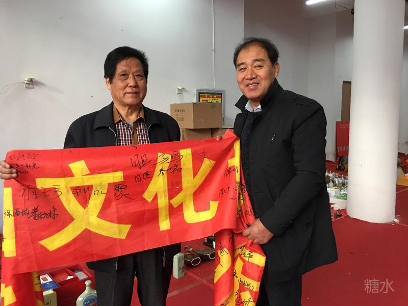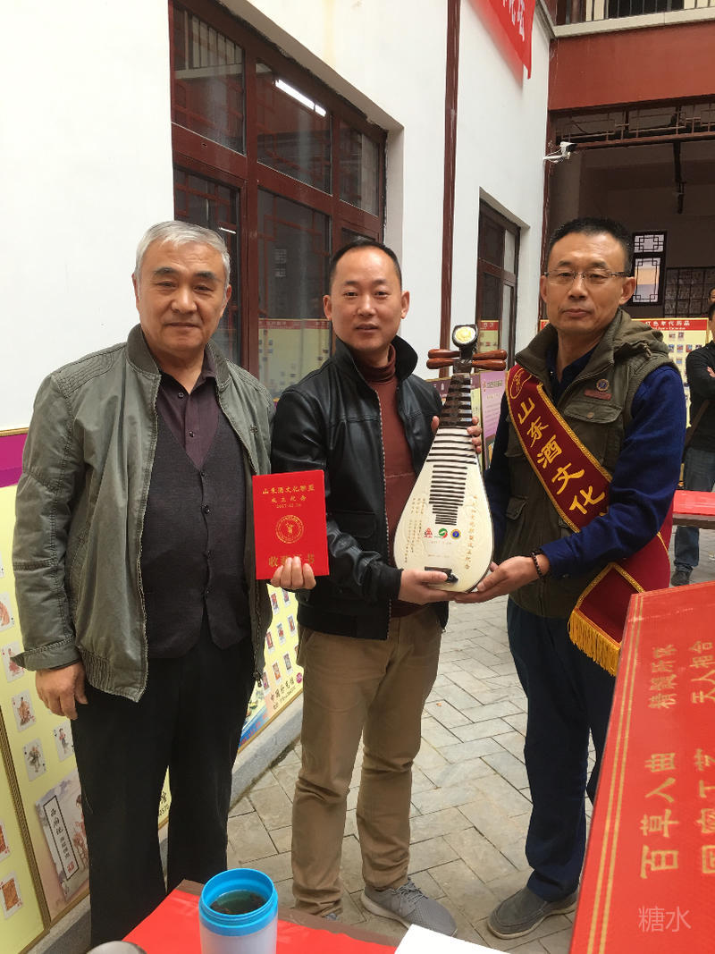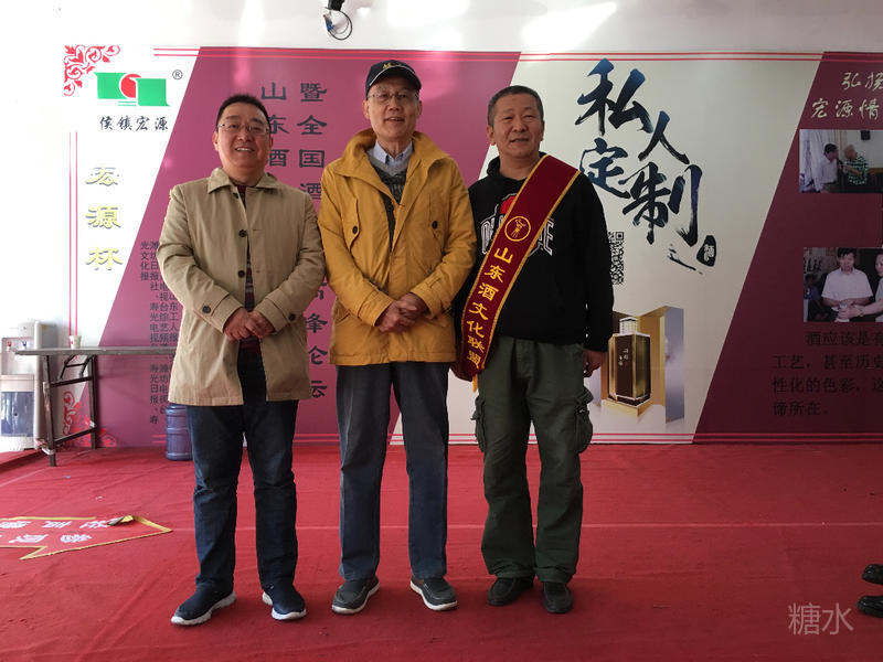 三位在酒文化研究领域极有建树的藏邑精英合影。(左一)“华夏酒报”特约撰稿人、江苏徐州王海先生,(居中)杨连新老师,(右一)山东酒文化联盟常务副理事长兼秘书长江世波。