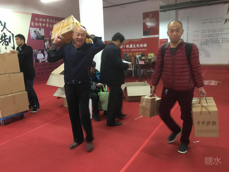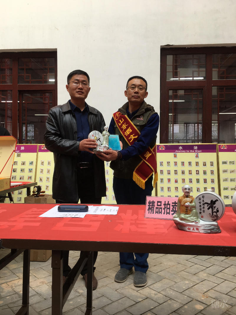 有序踊跃的纪念品发售现场,藏友踊跃购买中。图为来自山东威海的藏圈大咖孙宏卫老师欣喜购买了两套纪念品。