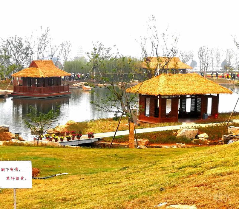 孔子大学堂前是一片水域,数间古朴的草屋点缀其间。再往南就是水面达一万多亩的尼山水库,由于地处尼山的脚下,更为圣山增添了美丽的湖光山色。
