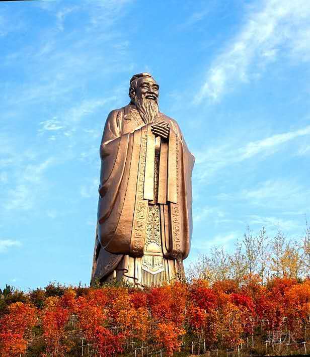 高高的石阶山坡上,至圣先师孔子的全身塑像巍峨挺立,极富有感染力!