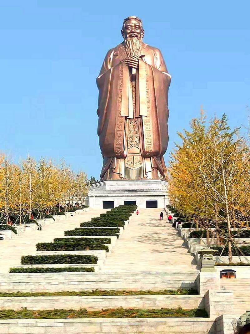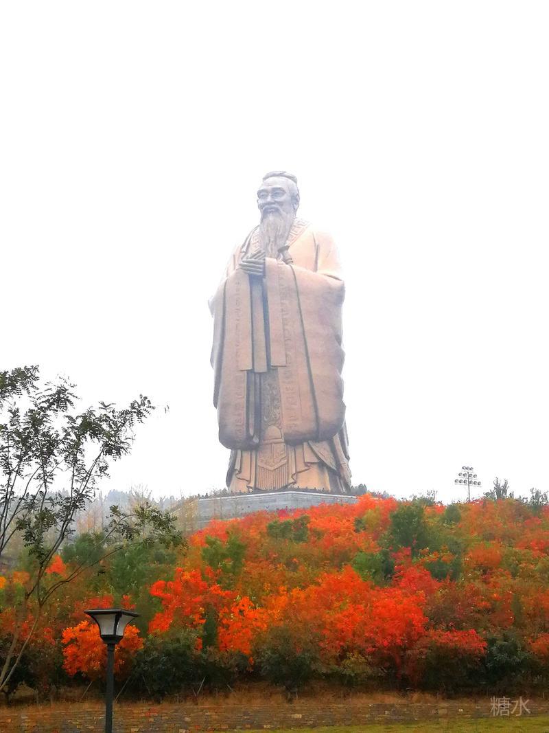 天气虽有些阴沉,但可以看到远处的孔子立像啦!跟着队伍前行,开始了博大精深的孔学文化之旅!