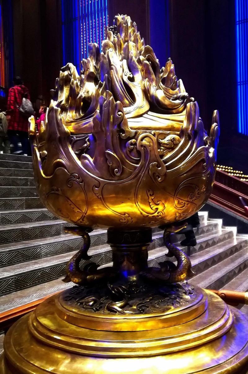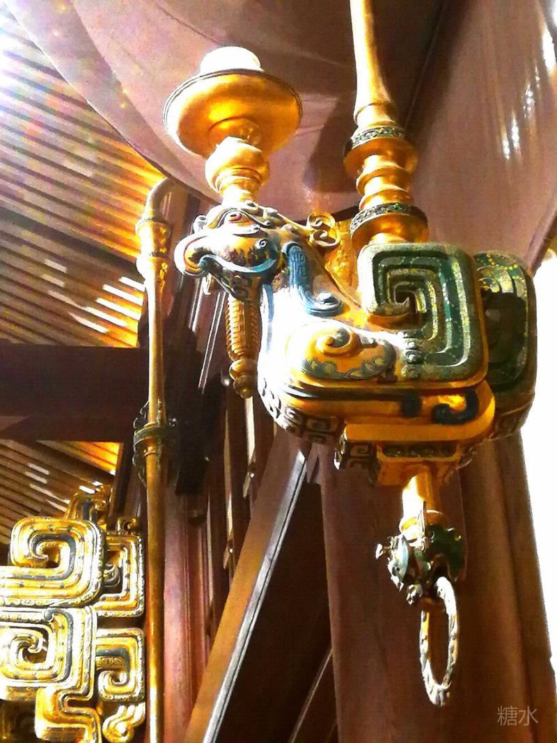 赫,龙凤造型持灯,佛龛之间的隔离装饰灯柱,竟然也这样豪华,这样艺术化!
