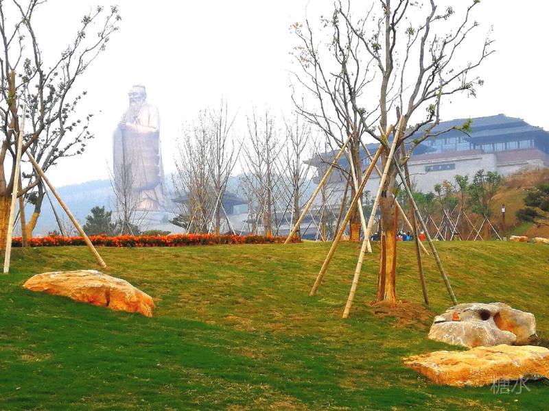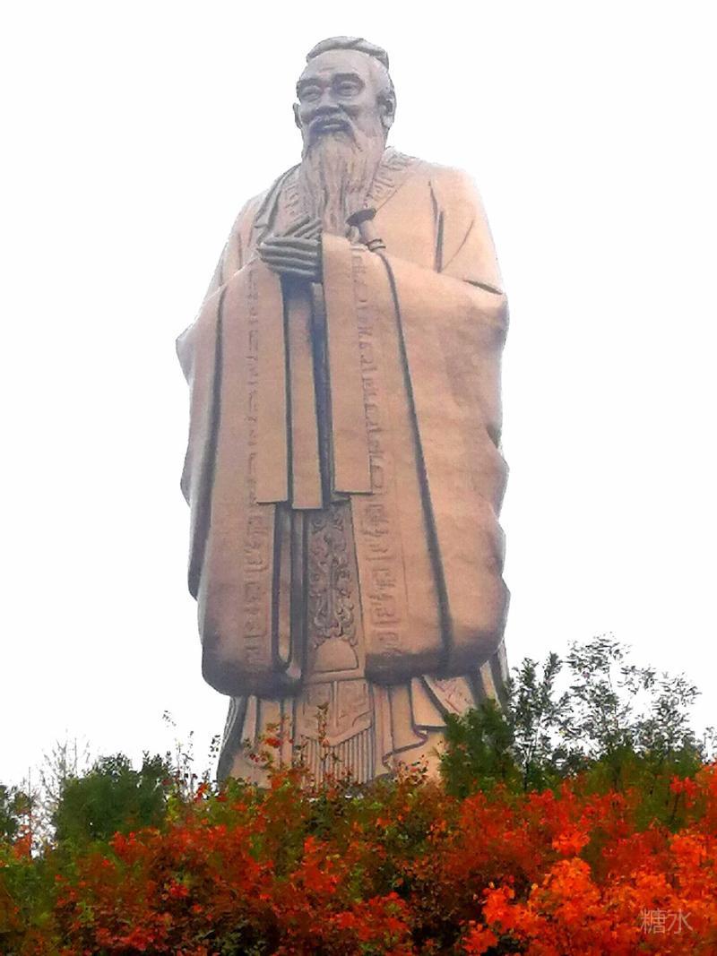 从大学堂出来,大学堂西面的孔子像屹立在尼山前,分外引人入胜。抵近 拜谒孔子去!