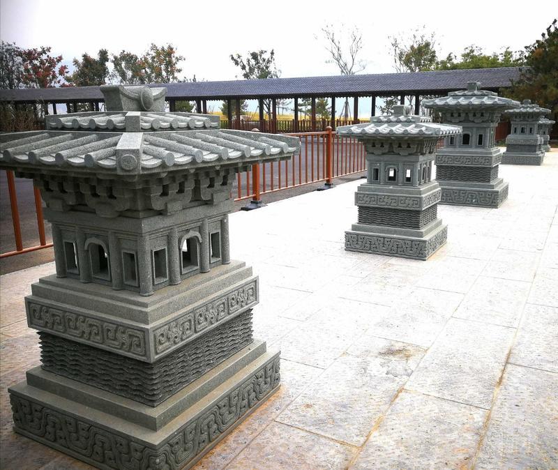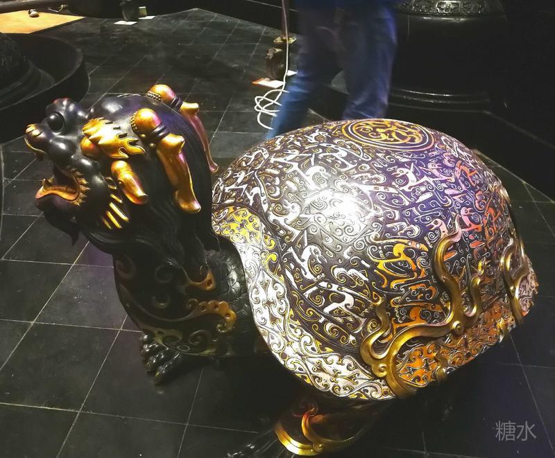 工人们正在摆放铸铜的龙头乌龟,看来大学堂里还在继续建设施工。