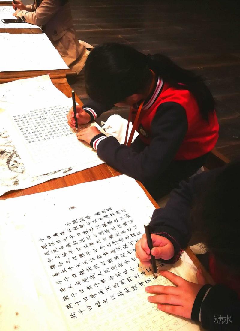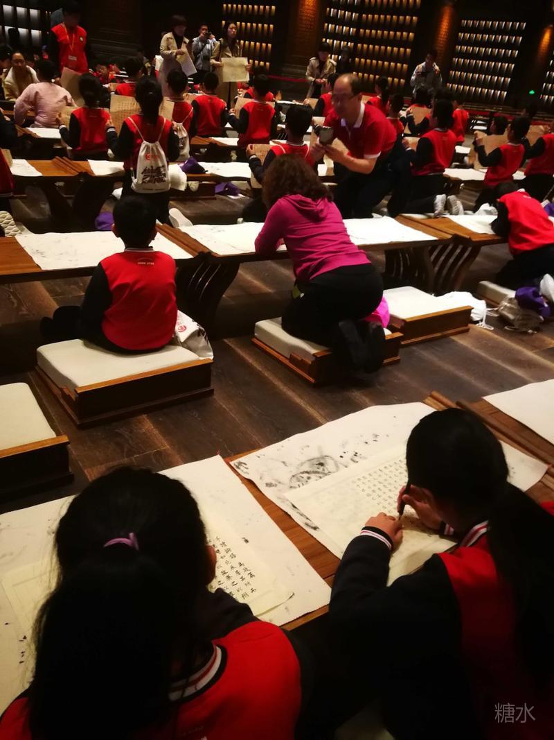 啊,这是”义”厅。巨大的屏风画挂中堂。堂内布满案桌条几,文房四宝,翰墨飘香。