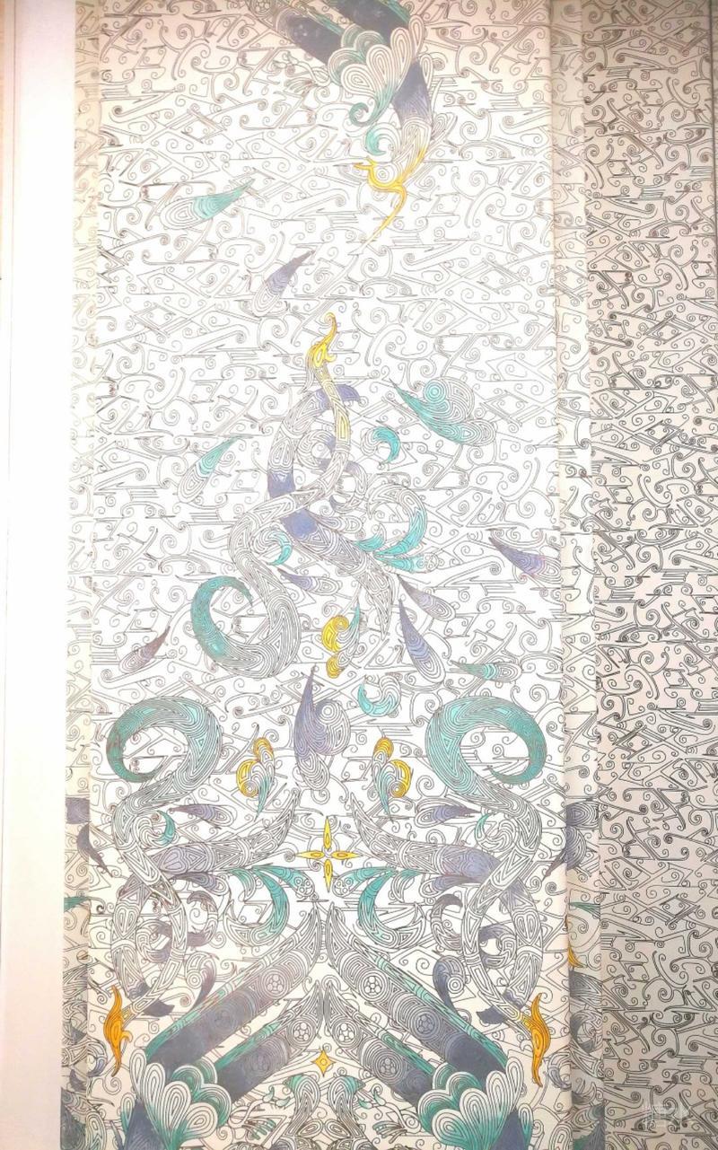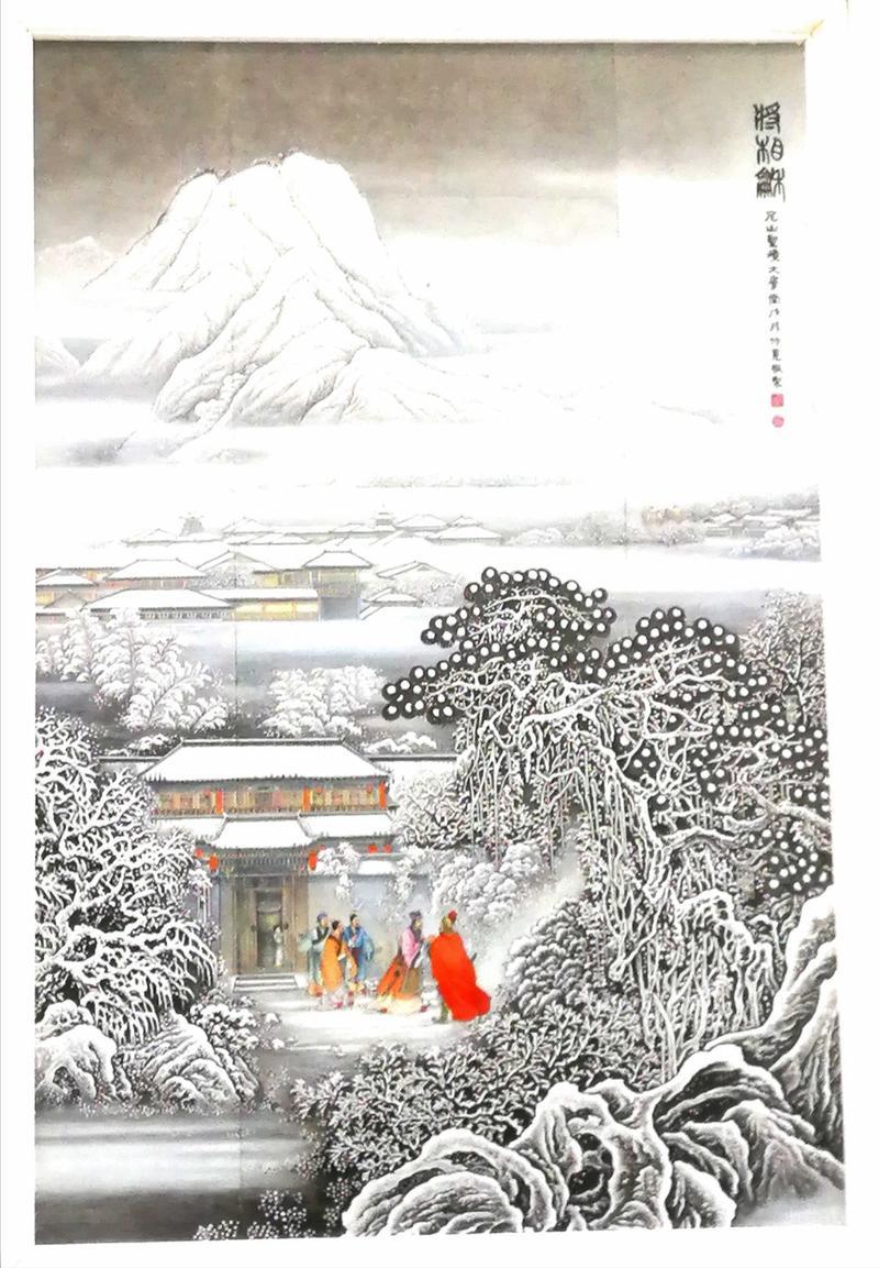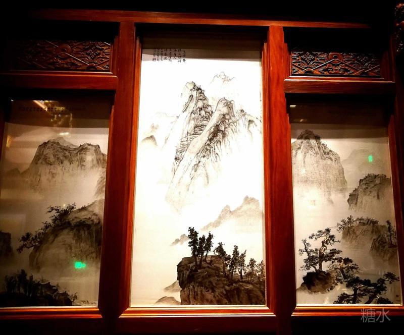 但这巨幅的山水画卷,方显出古色古香的中国传统画派。