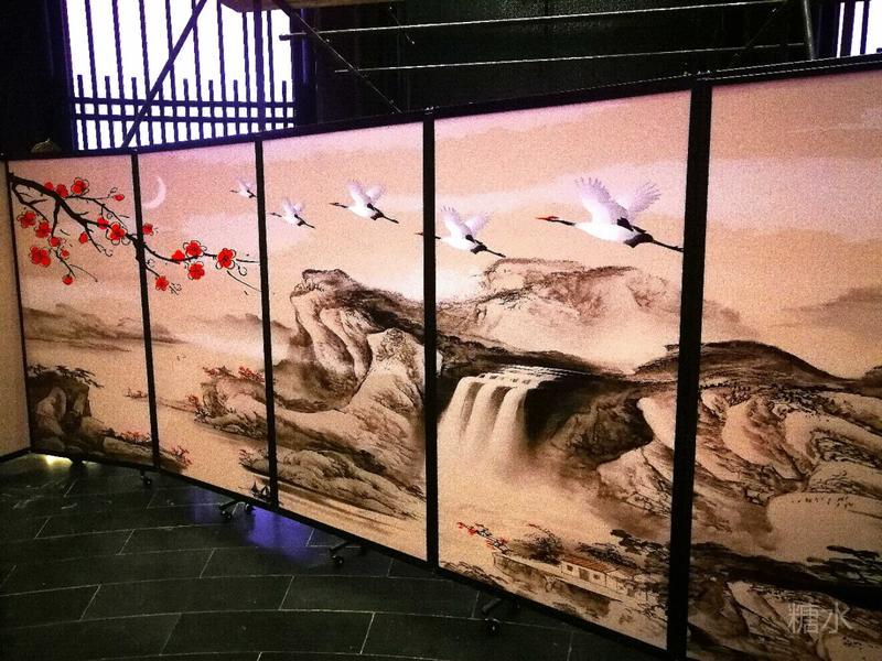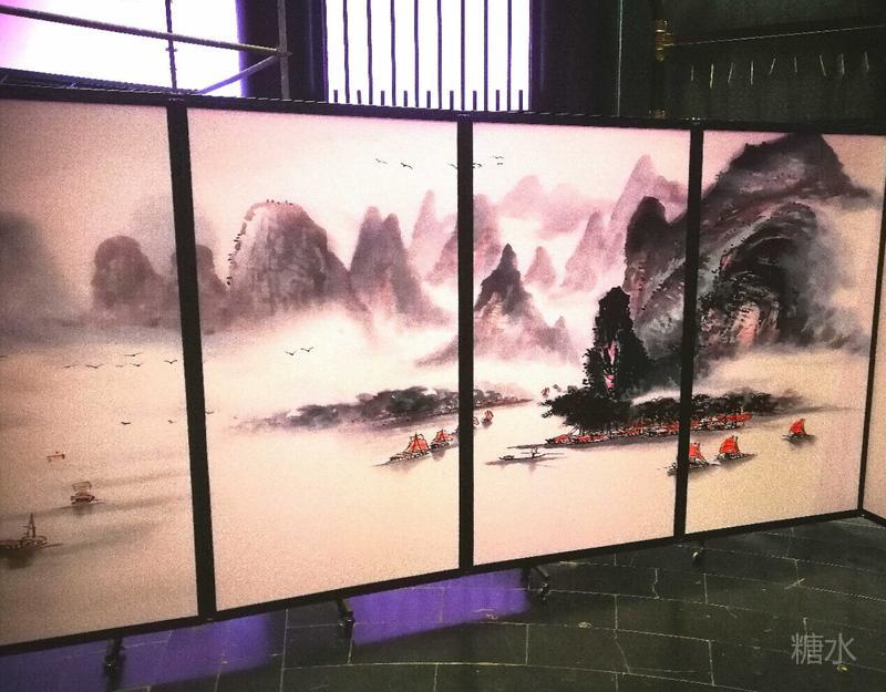 “信”厅里的这幅屏风画,似表现的桂林山水。