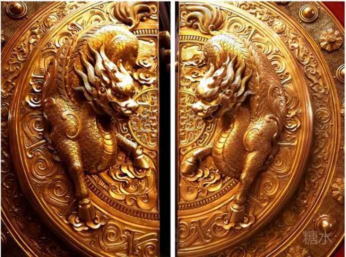 登上高高的楼顶,迎面是一对麒麟对歭的辉煌大门。