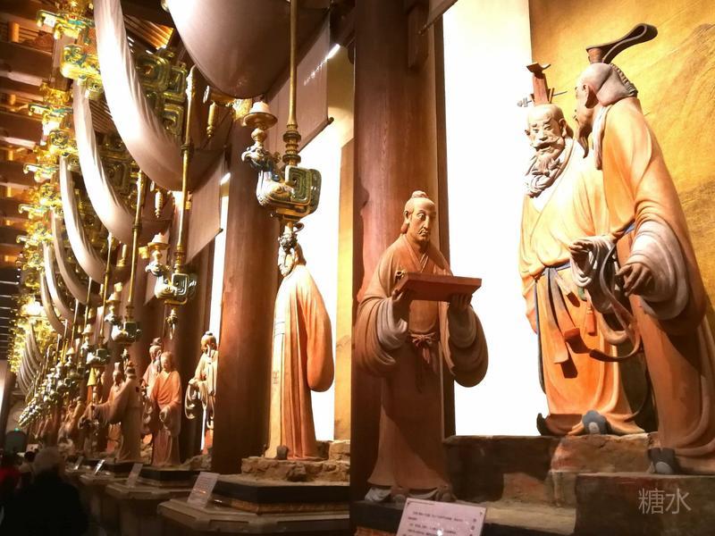 孔子的这七十二贤徒,竟以这样佛龛雕塑的形式出现!令人感慨设计者的巧妙构思,视觉艺术的强烈刺激,竟如此生动,如此强烈!