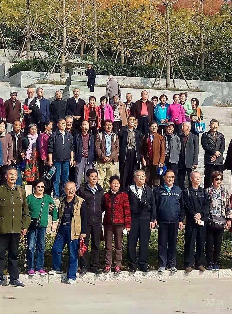 在宏伟壮观的大学堂前,老同志们合影留念。