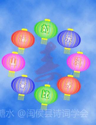 姚 英 光照西园,福如东海;明澄北极,寿比南山。 蟠桃献寿,光风霁月;仙鹤延年,明景祥云。 光环文气,无边寿;明玉德馨,尽日诗。 王雪森 光凝毫末铿锵字,明透心间豁达人。 光阴易逝友情重,明月长辉翰墨香。 吴南山 光耀诗书画,明同日月星。 洪佩钦 光凝心底佳联接地气,明沐案头巧字夺天工。 徐力建 光风世路,六九春秋,诗书画印遊于艺; 明月人生,三千日夜,苦辣酸甜慨以怀。