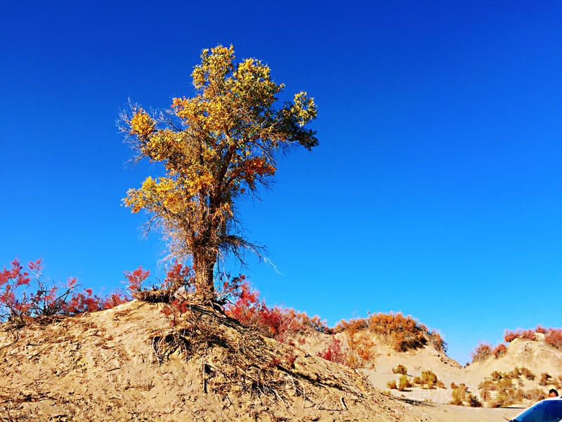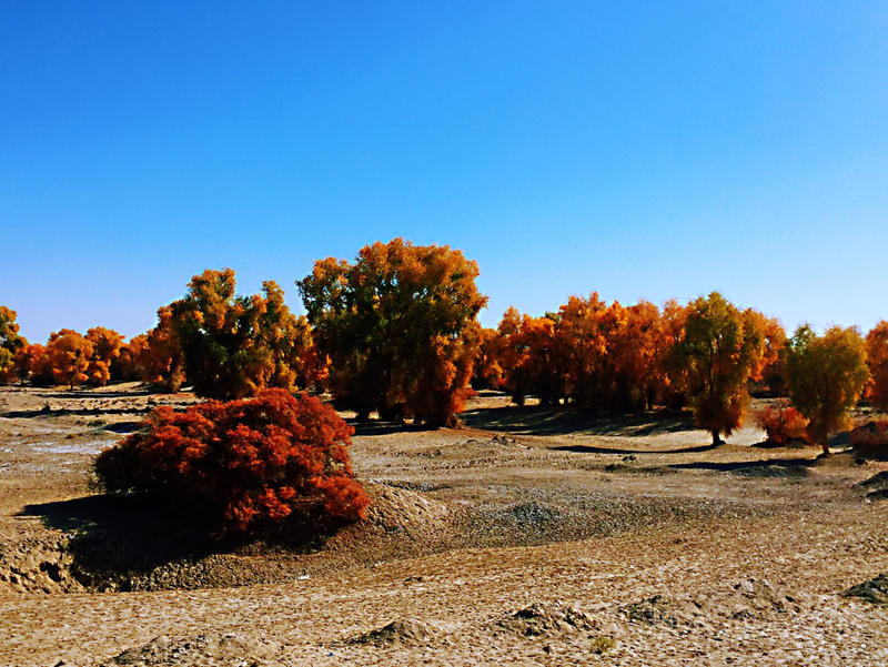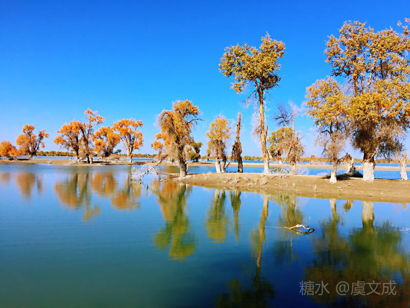 【沙雅,胡杨醉了】 鸿雁在云鱼之间掠过 带来北极圈的冰雪寒风 你把秋风当作古丽的衣裳 为塔克拉玛干沙漠披上斑斓 你把秋雪当作泼墨的砚盘 在塔里木河绘出百里红妆秋香 这是金色的胡杨 这是胡杨的故乡 太阳岛上的千年胡杨如此沧桑 如诗长廊的杨林如此似火灿烂 十月的沙雅胡杨似金龙起舞 搅起南疆这片土地红霞满泛 有人说这是恋爱中的姑娘 有人说这是酒酣时的壮汉 那一种的醉美 让人惊叹的无法语言 而你却带着一身的疲惫 把色刻在风冻住霜的一瞬间 注:2018年10月下旬摄于新疆阿克苏地区沙雅县金色胡杨林