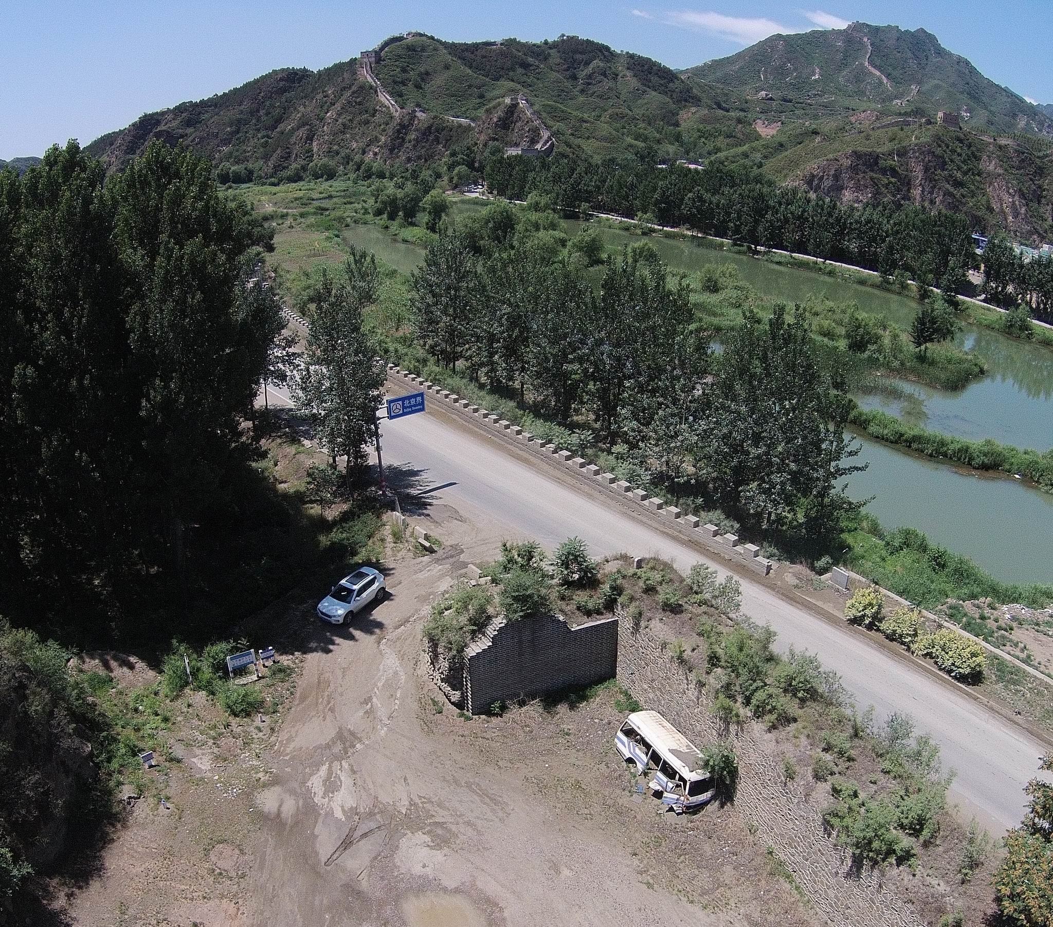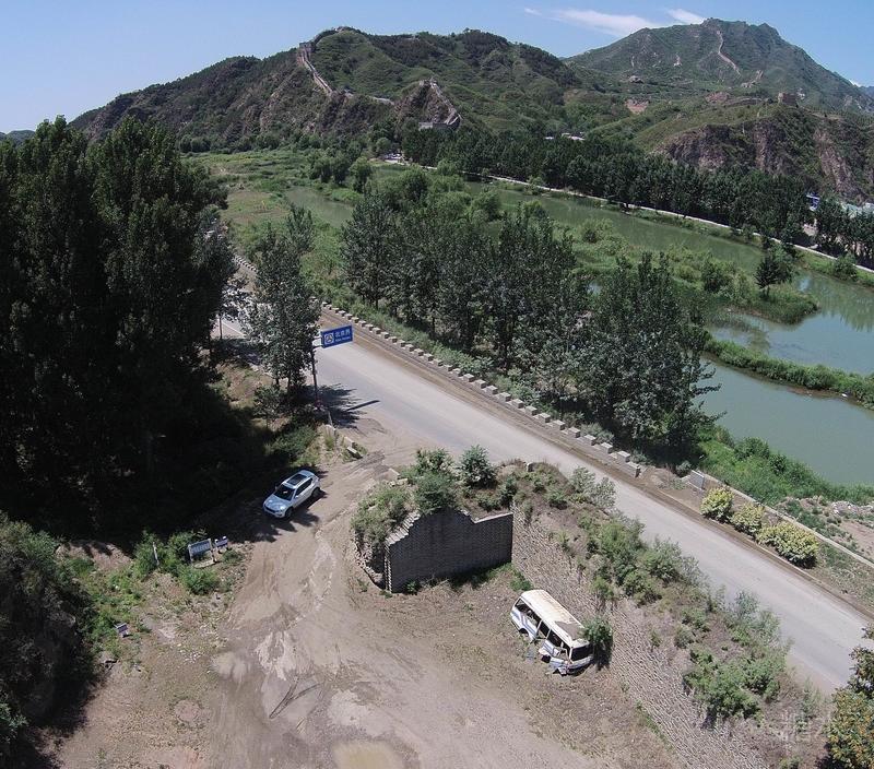 古北口铁门关和姊妹楼(无人机航拍片) 摄影王建军,张保田 2018年5月 5个月前,那时我们还没见到皮瑞140多年拍摄的古北口老照片,但并不妨碍王建军和我在残破的铁门关内拍摄了与皮瑞老先生类似试场的航拍彩色片。在2018年片上可以看到照片右下部是铁门关的西墙,幸运地保留下来一部分。远景的姊妹楼段则经过近几年的重修。 因为是无人机升空俯拍,所以拍点高于老照片。
