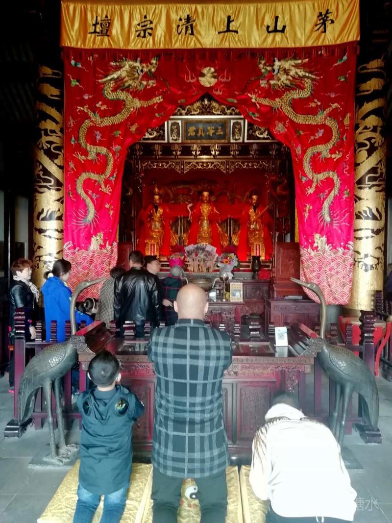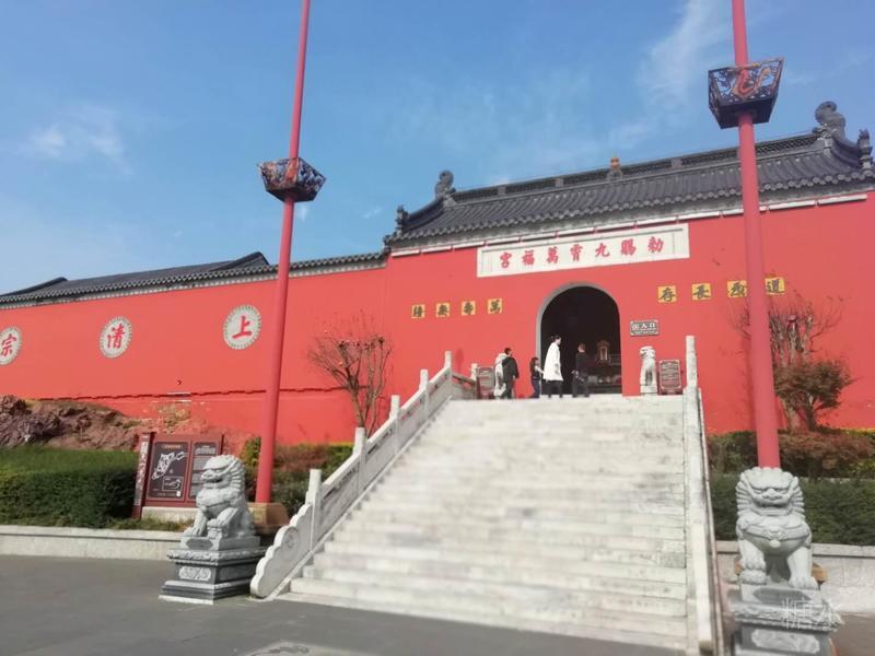 登上山顶啦。 九霄万福宫又称顶宫,座落于茅山主峰大茅峰之巅,海拔372.5米,始建于西汉,明万历26年(公元1598年)敕建殿宇,赐名九霄万福宫。