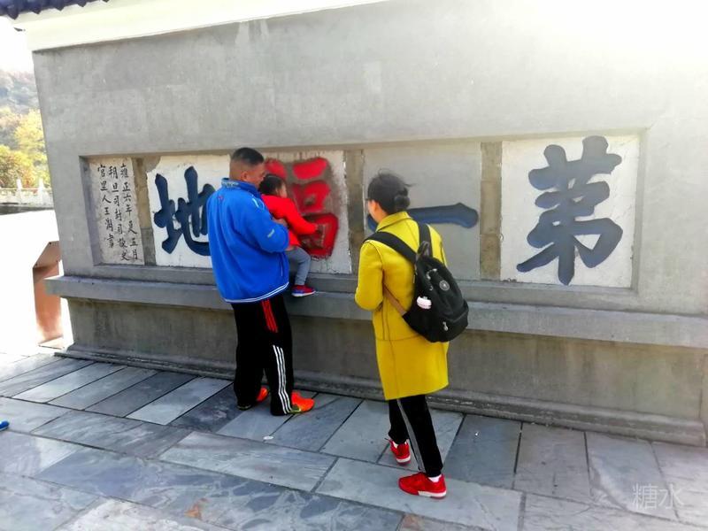 “第一福地”的福字坊间传闻人摸了以后便有福气,如此此“福”字已被众人摸的溜滑,与旁边字模样已大相径庭。不管信与不信,摸一模拈拈吉利呗。