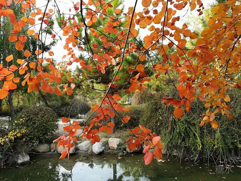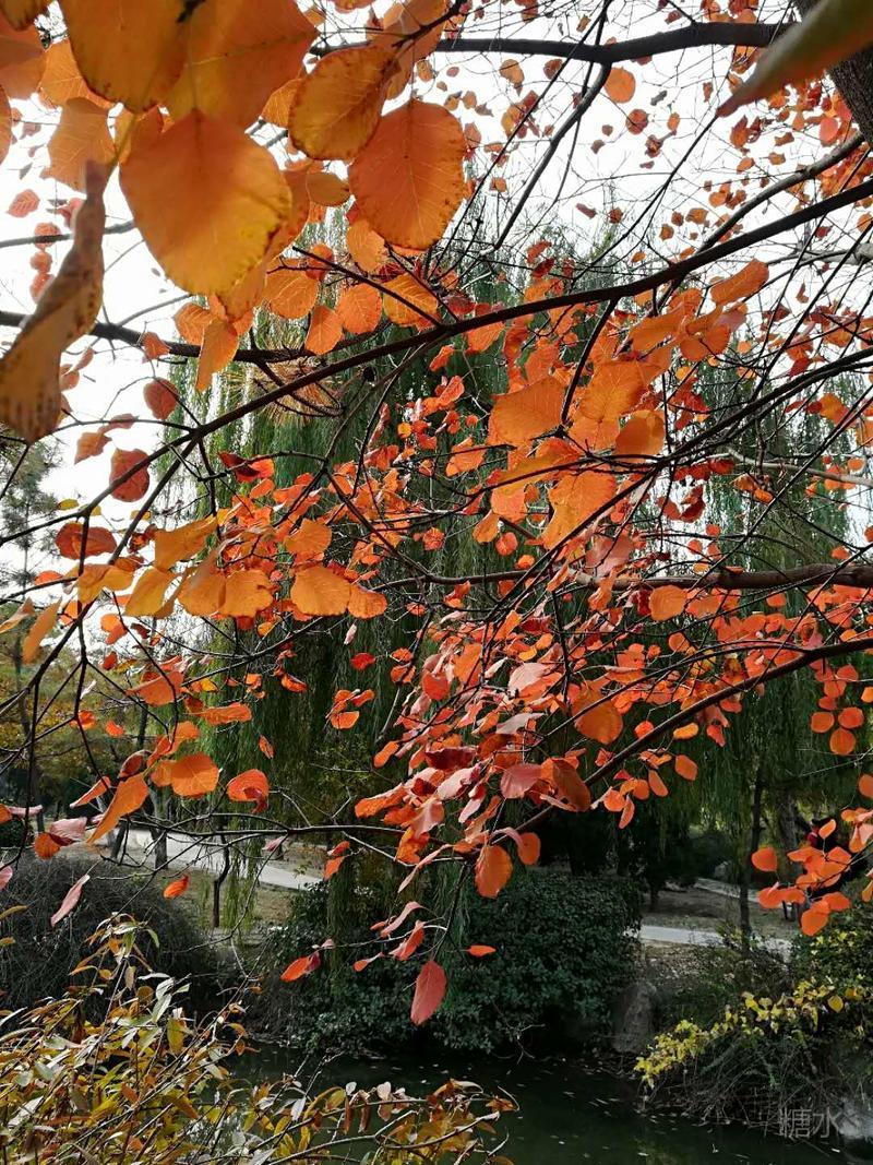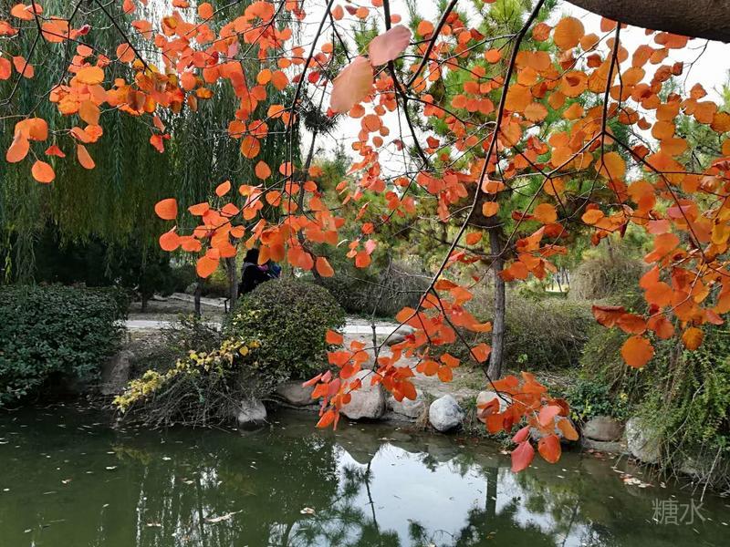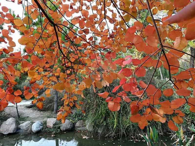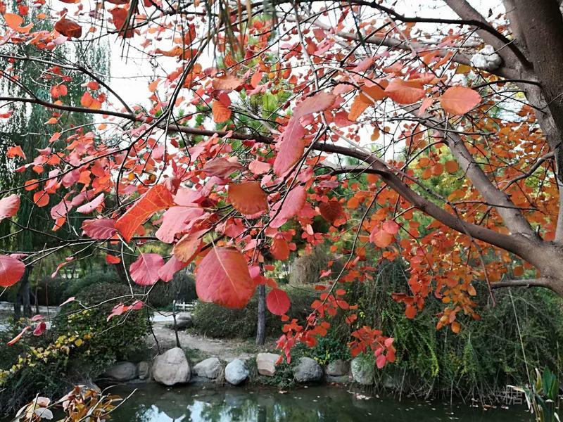 火炬公园漫步走, 秋嫂冬哥对话中。 莫道此时无佳景, 黄栌美叶映天红。
