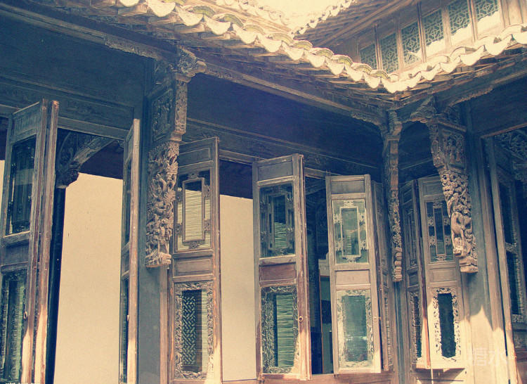 6、还有那些迎风沐雨的飞檐翘角、黛瓦粉墙、雕窗水阁、青苔古砖,它们都在倾情喧染,眼波流转间,似乎倒转了时光,步入了前世,让人生出恍如隔世的幻觉——流连之间,已然置身于世外桃源。