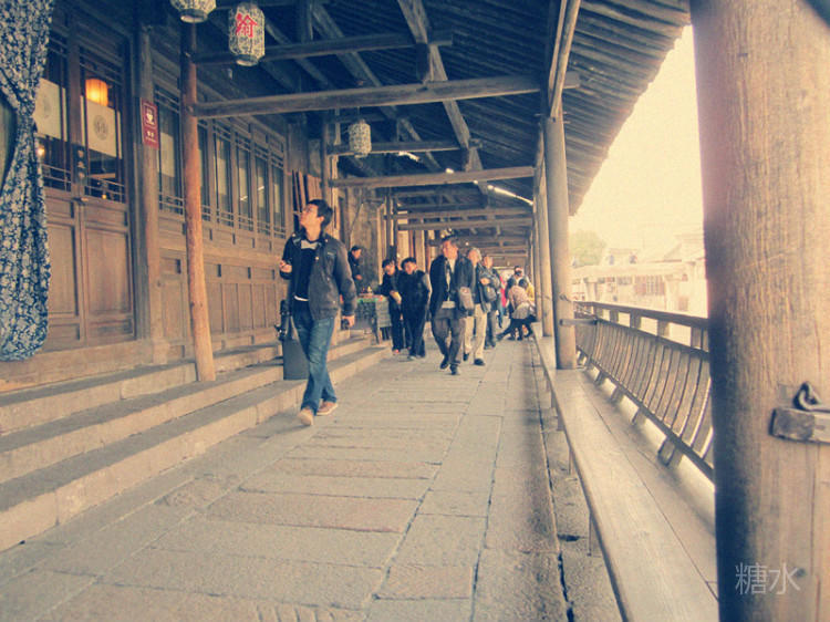 15、整整三个小时, 我不厌其烦地穿梭在乌镇河两岸,翻阅着每一本泛黄的书籍——百床馆,木雕馆,民俗馆,钱币馆,染坊、酒坊,修真观戏台各具特色;星罗棋布的商铺仍能显示出当年的繁华与歌舞升平。不知远古那些会聚临河水阁的雅士们,在凭栏对酌,举杯邀月,畅舒豪情时,可曾想到过今日的繁景?