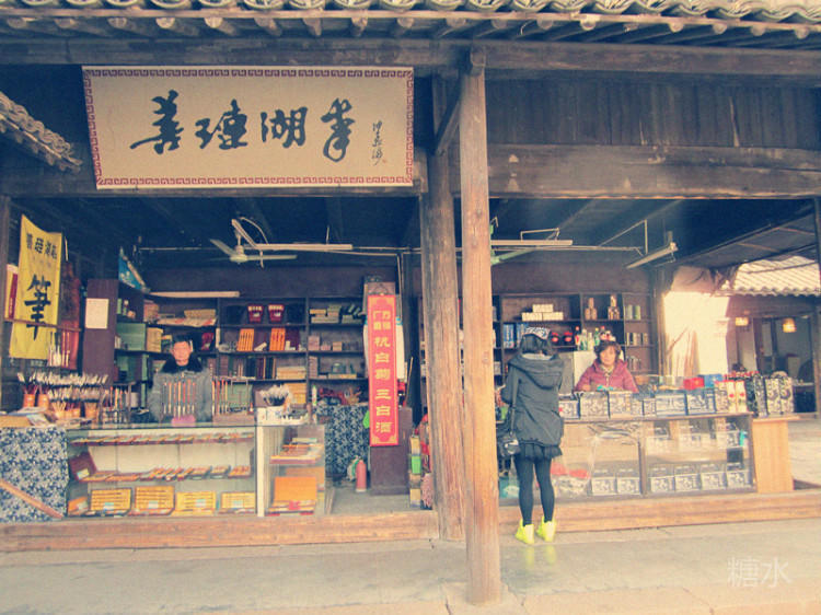 17、在长长的石板路尽头的繁华地段,有原汁原味的蜡染布料,有陈年的米酒,有湖笔,有皮影戏,有早已看不到的油纸伞……各种各样的江南手工制品更是琳琅满目,让人应接不暇。