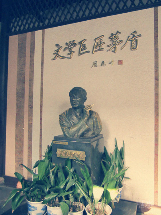12、乌镇,也是一代文豪茅盾的家乡。茅盾以其《子夜》、《蚀》、《林家铺子》等一系列作品闻名于世。当我走进立志书院时,看到它们规则地陈列在玻璃橱窗内,默默地注视着每一个过往的游客,好像在向我娓娓地讲述着一个永远都讲不完的古镇的故事。