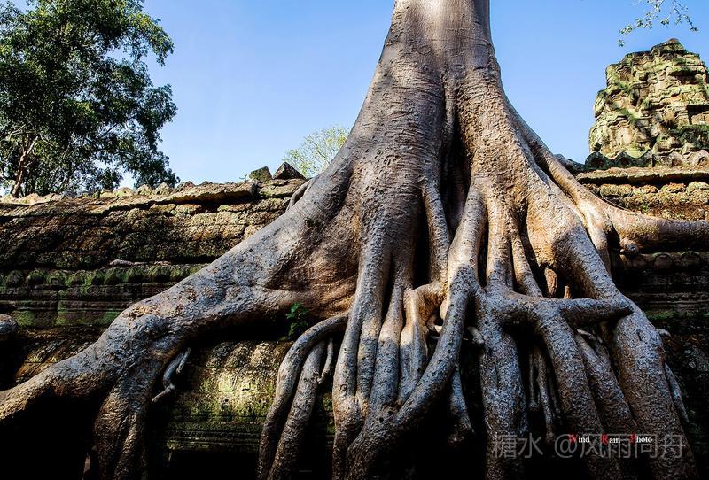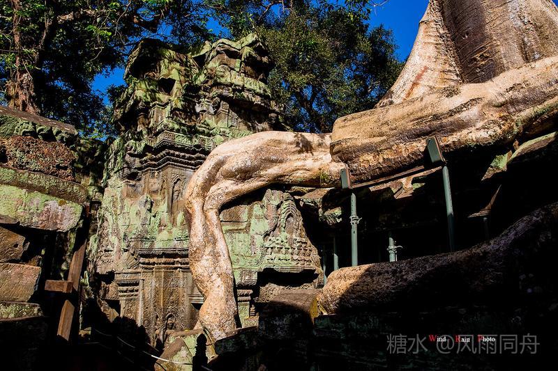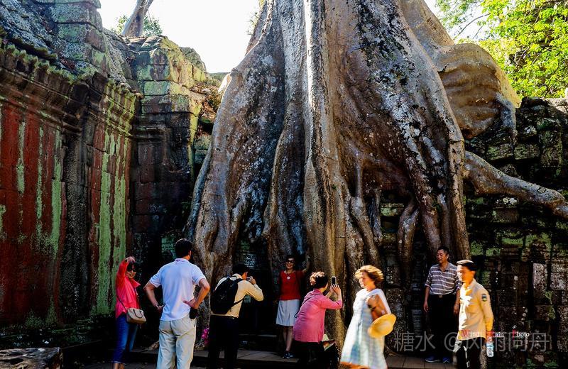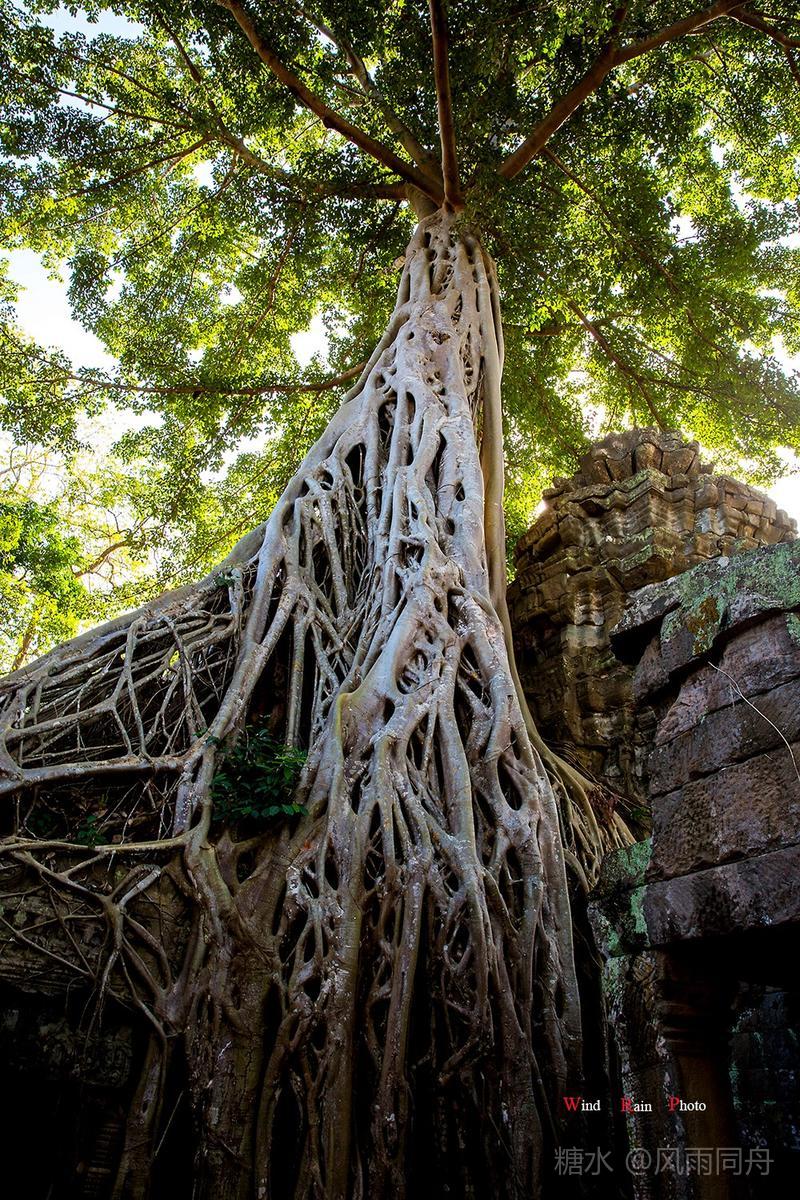 塔布隆寺,又称“树根盘踞的神殿”。《古墓丽影》拍摄地。一种叫蛇树的树根 紧紧缠绕着神殿和庙墙,蔚为奇观。《花样年华》中梁朝伟,也同样选择了来吴哥窟树洞 来掩埋心中的秘密。这些都传达了吴哥窟的神秘和无解……