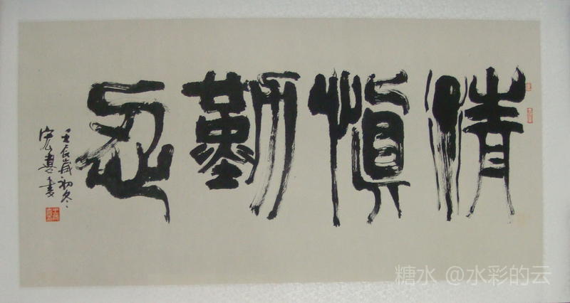 ▲此为中国的篆书。它的含义是四种君子的追求:精致、谨慎、诚实、宽容。 This is the Chinese seal script. It means that a gentleman pursues the four spiritual pursuits: delicacy, prudence, honesty and tolerance.