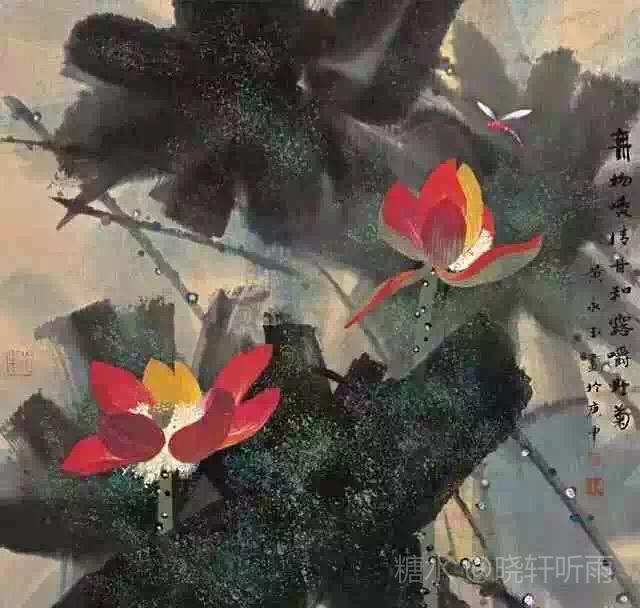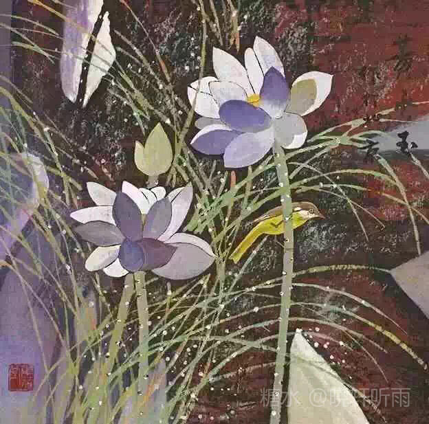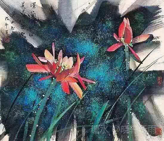 他还喜爱画荷花,已画了8000多张 他笔下的荷花,用色大胆却又高节淡雅。