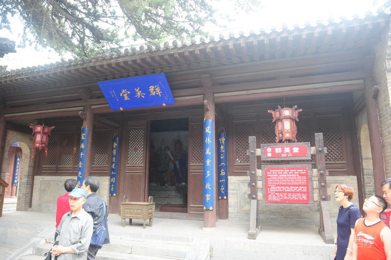 雁门关还有一段传奇。唐朝初期,名将薛仁贵为代州都督,镇守雁门。那时来犯之敌已由匈奴转为突厥了。一次突厥进犯,年近七十的薛仁贵领兵出击。阵前突厥人问,唐将是谁?唐兵答道,薛仁贵。突厥人认为薛仁贵早死了,不信。薛仁贵脱盔示面,突厥军惊视失色,“贼闻仁贵 复起为将,素惮其名,皆奔散,不敢当之。”薛仁贵趁机进攻,“斩首万余级,获生口二万余人、驼马牛羊三万余头。”这一仗叫“云州之战”,也是薛仁贵最后一仗,第二年就病逝了。(《旧唐书•列传三十三》)群英堂供奉着薛仁贵塑像。