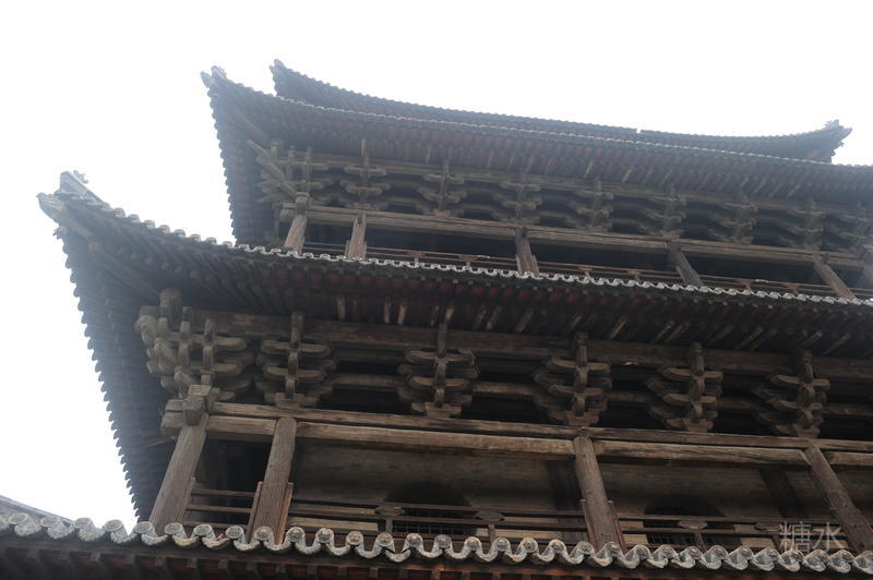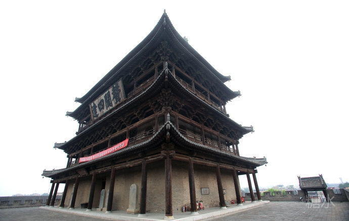 边靖楼建在代县古城中央,也叫鼓楼、谯楼,是中国最大的木质结构鼓楼,楼基高13米,楼高25米,站在城楼上远眺,可以俯瞰全城。现在已经看不出、也猜不出当年边靖楼究竟做何种用途了。空旷大殿没有什么装饰,几百年岁月沧桑凝结在粗糙陈旧的木柱、木梁、斗拱上,也许它有许多故事,也许并没有太精彩的故事,但是那些精致的构造一览无余展现在眼前,经历了几百年风霜雪雨,经历了无数次自然还是人间灾难,至今还保持着几百年的样子,这本身就足矣让人心动。