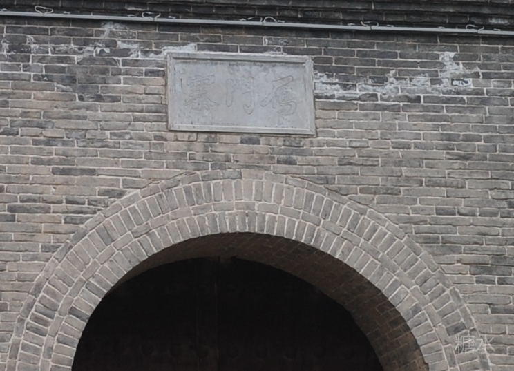“明月楼”牌匾高悬,比较好认,老远就能看见,而城楼门洞上还有三个字“雁门寨”,就得走近才能看清楚。