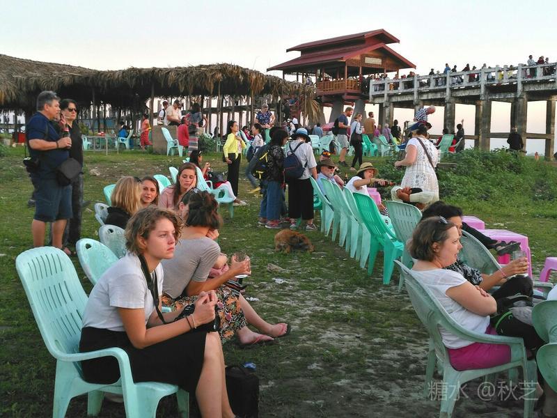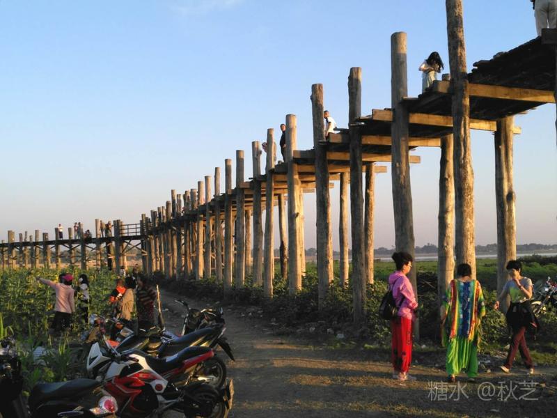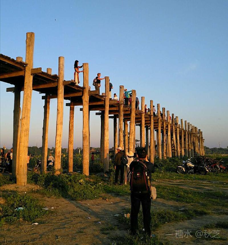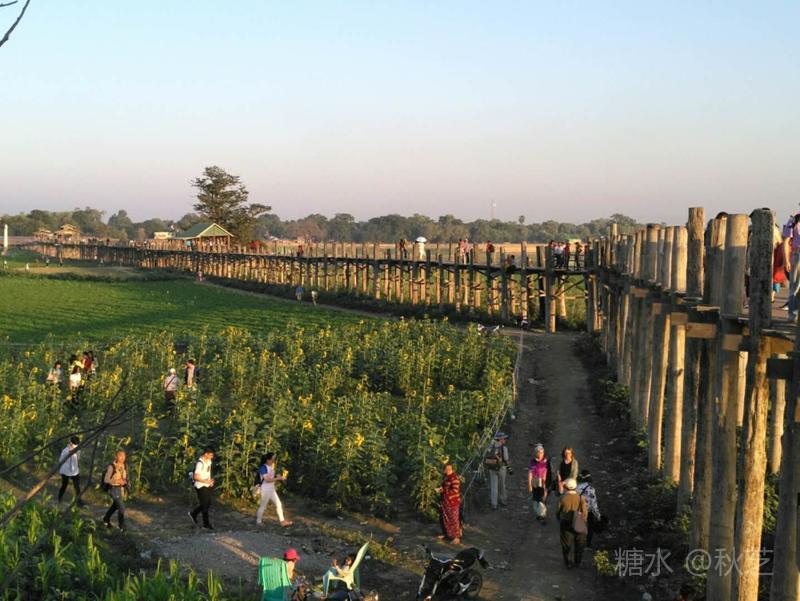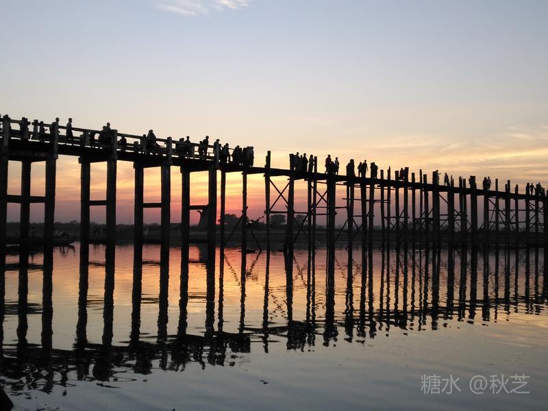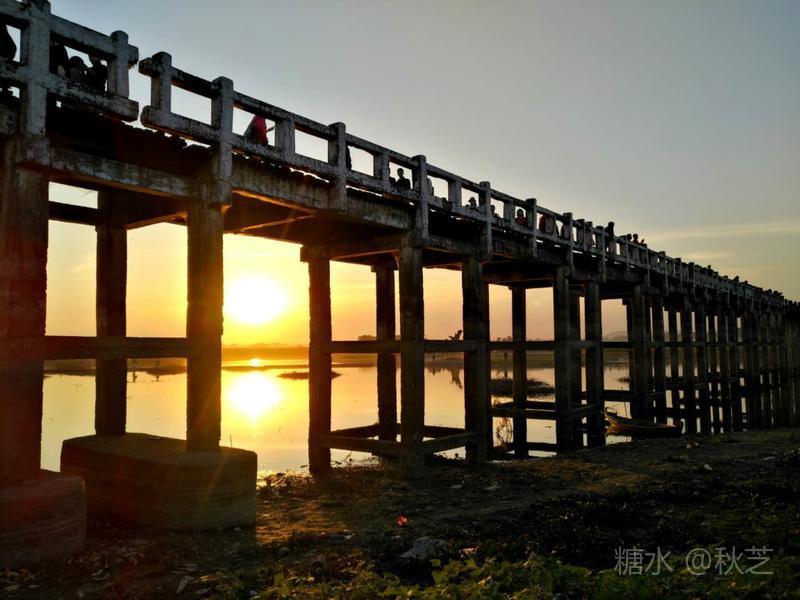桥上人头攒动,众多摄影爱好者拿着手机和相机,拍摄乌本桥最美的景观。乌本桥桥面不宽,在光影的作用下,远远望去,展现出一幅美丽的画面,瑰丽的夕阳含蓄抽象,让人赞叹不已!