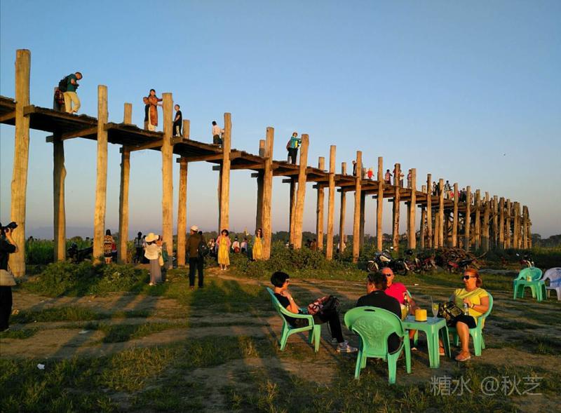 去乌本桥参观游览最佳时间是黄昏时分,这里是观赏日落的最佳地点,我们一行20人就在一天中最美的时刻,拍摄和观赏美丽的晚霞。