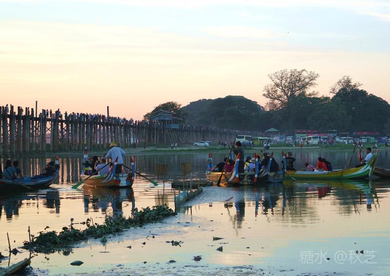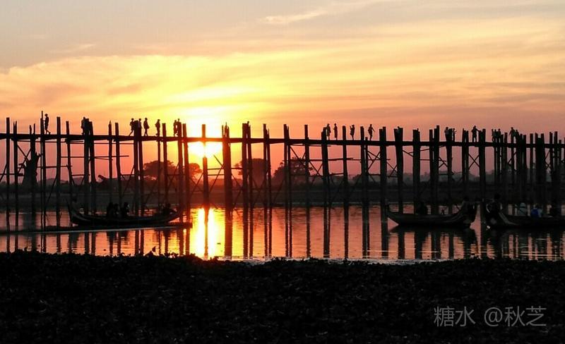 乌本桥的美景名不虚传,夕阳西下、红霞满天,古桥与小船,漂浮于如境的湖面,让人流连忘返!