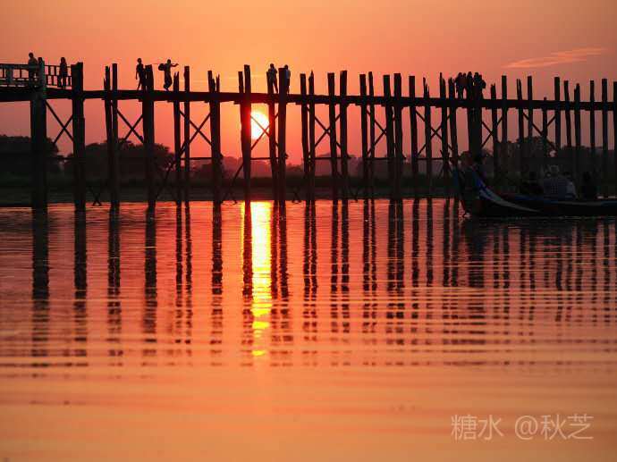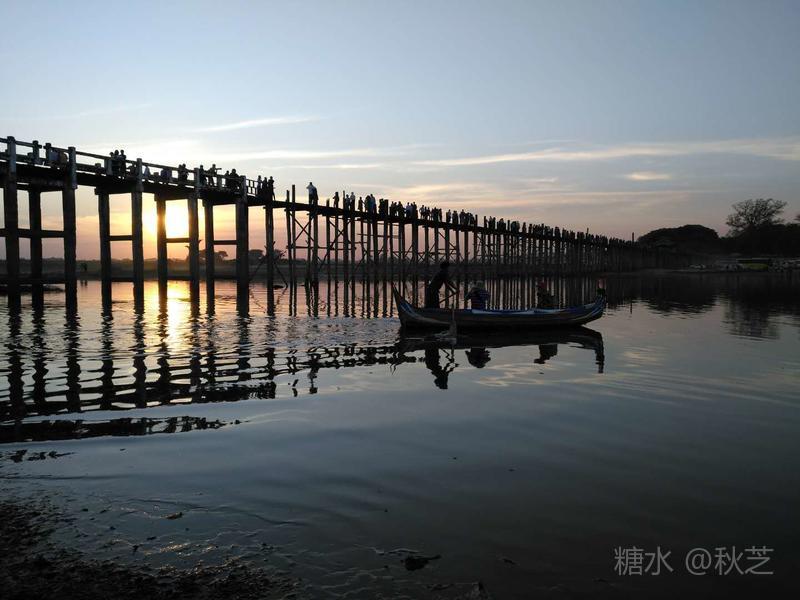 乌本桥最吸引人的特色就是日落时分,以乌本桥为前景来拍摄,等待着太阳一点点慢慢沉入水面,看湖水由清浅的蓝渐渐染上一抹玫瑰色的暖,那真是美不胜收!