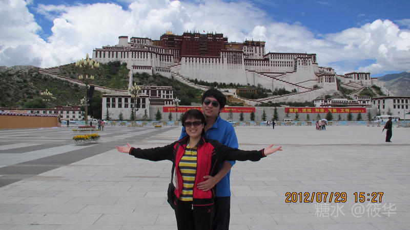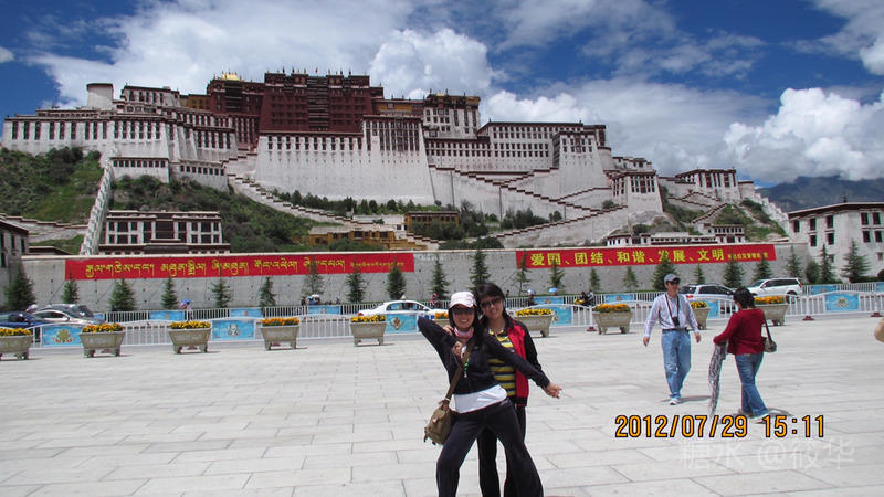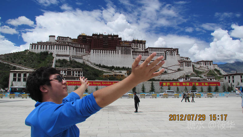让人难忘的还有布达拉宫广场,位于布达拉宫的对面,进入广场也还要经过严格的安检,在广场上拍照摄影不能将任何物品放于地面上,更不允许坐在地上照相休息,到处都是武警,两个孩子想坐在地上照一张kapa,好家伙,两个方位的武警闪电般的的冲了过来,真枪实弹的着实令人害怕😱呀。对于进出布达拉宫的人和驻留广场拍照人的严格管理,足以证明西藏人民对这座有着1300多年历史宫殿的爱护以及对自己信仰的虔诚,令人感动。我爱你—庄严肃穆的布达拉!!