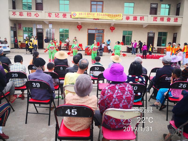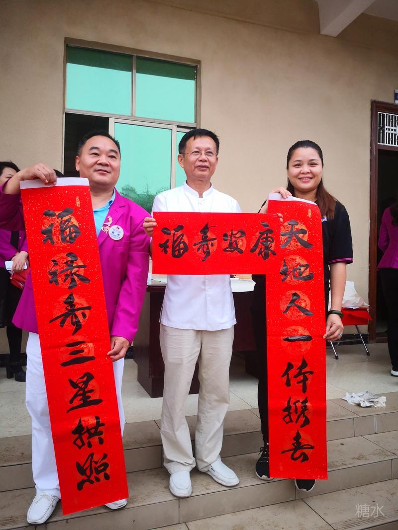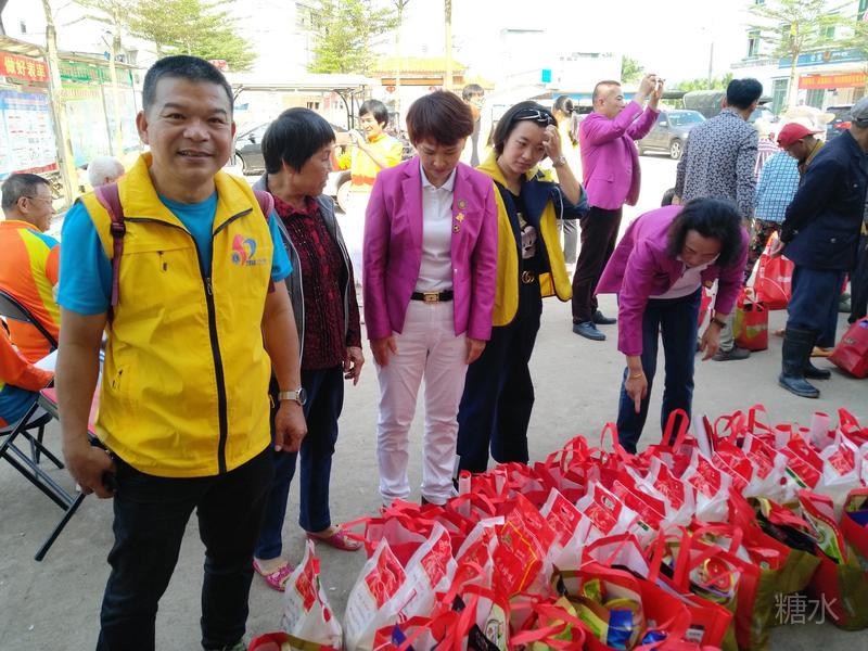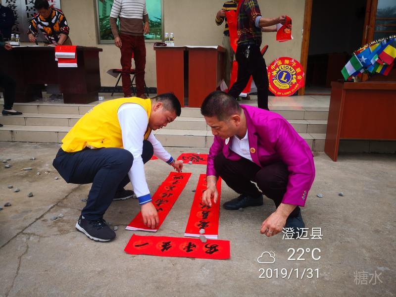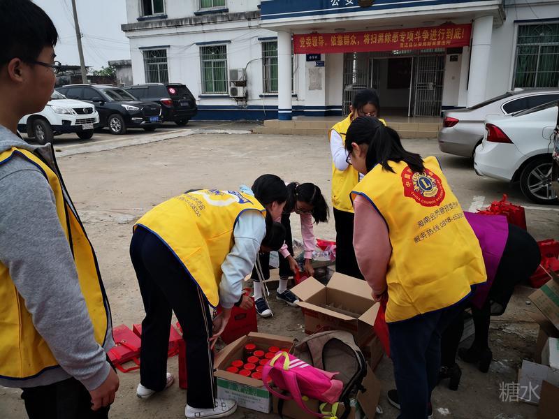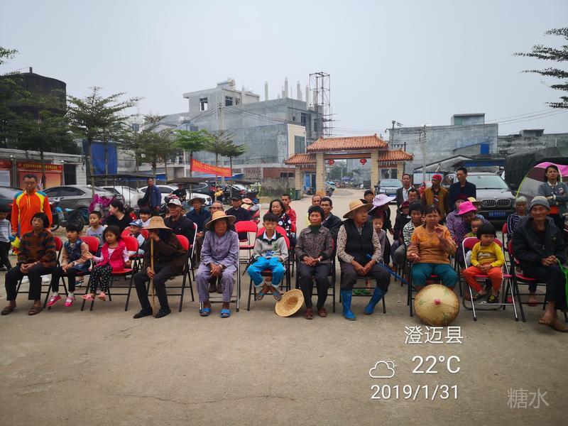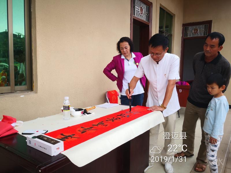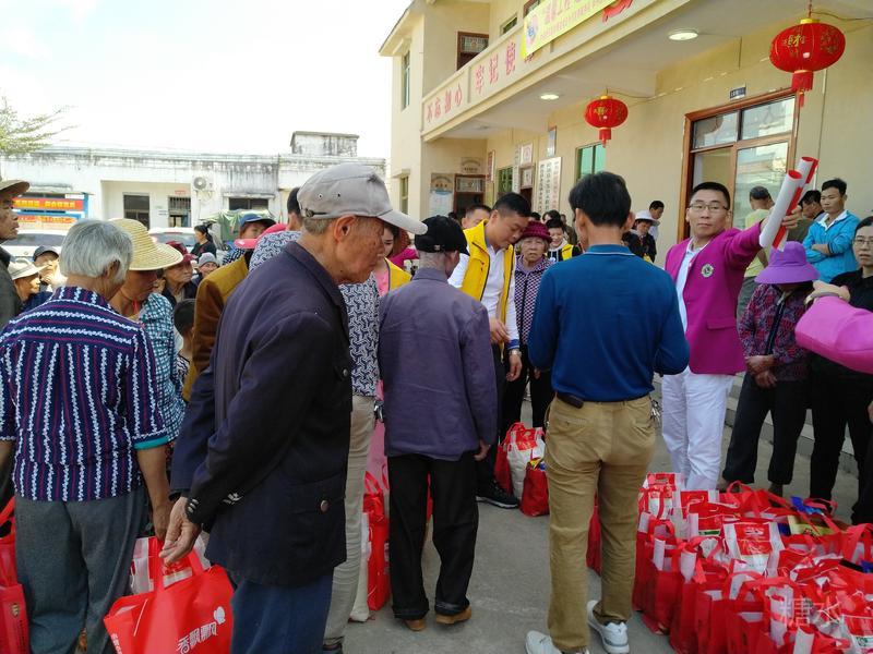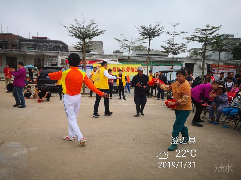 1月31日上午七点四十在海口老市委大院集合,六十多位志愿者自驾车八点出发前往澄迈县永发镇永跃社区,主办方购买大米、食用油、芝麻糊、营养麦片、核桃粉、金永丰佐料套装等赠送给35户孤寡老人和特困家庭。九点抵达永跃社区,物资组、书法组、文艺组、义诊组立即投入准备工作。